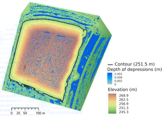Water is drained from the entire spoil heap area (see Figure 4). The summit area enables ponding and wetland creation in closed depressions.