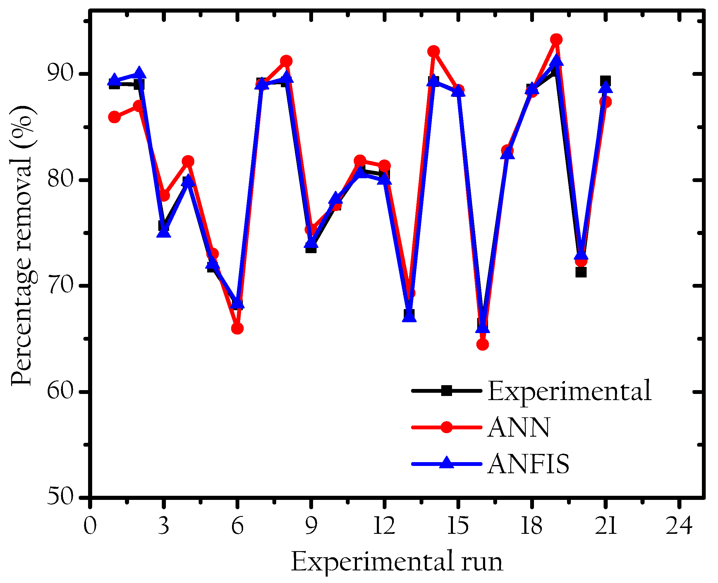 - Igwilo, C.N.; Ude, N.C.; Onoh, I.M.; Enekwe, C.B.; Alieze, B.A. RSM, ANN and ANFIS applications in modeling fermentable sugar production from enzymatic hydrolysis of Colocynthis Vulgaris Shrad seeds shell. Bioresour. Technol. Rep. 2022, 18, 101056. [Google Scholar] [CrossRef]