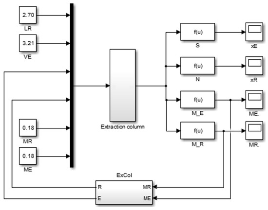 To provide a clear overview of the petroleum extraction process and the main material and control flows considered in this study, a simplified functional scheme of the extraction column is presented in Figure 1.