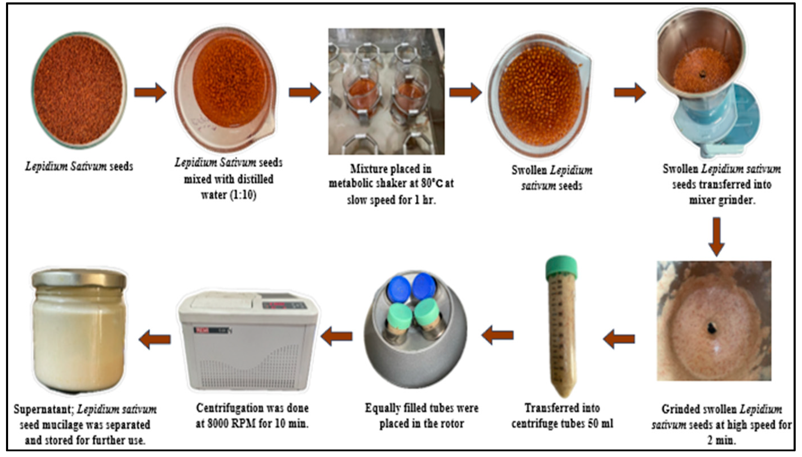 2.3. Preparation of Lepidium sativum Seed Mucilage (LSM)