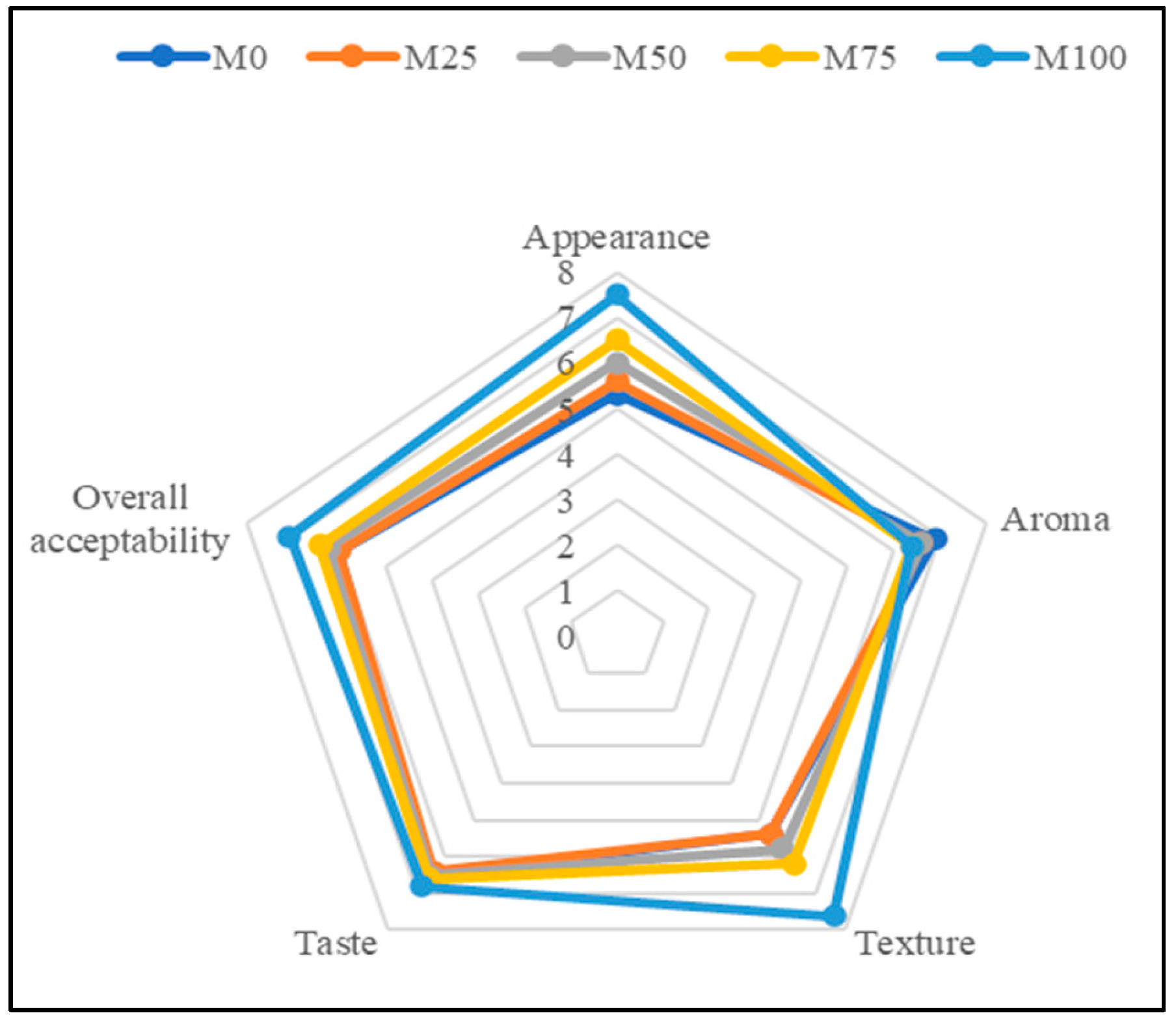 | Ingredients | M0 | M25 | M50 | M75 | M100 |