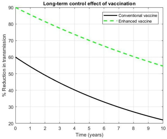 Enhanced vaccine formulations, characterized by improved stability and release control, increase , effectively reducing the susceptible pool and ensuring that the Routh–Hurwitz conditions hold [10], thus stabilizing endemic prevalence.