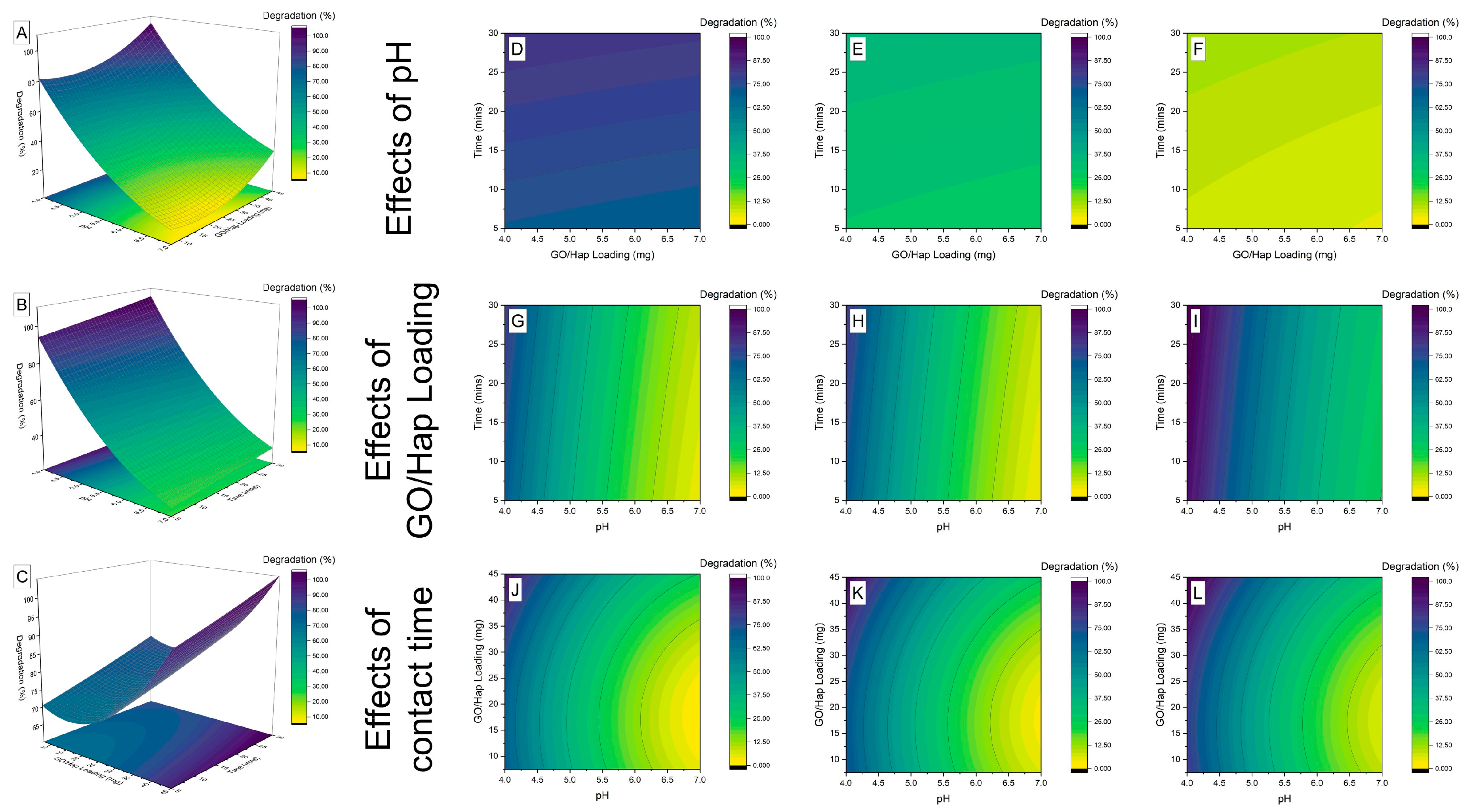 3.5. Implications of Potent, Accelerated, and Optimized Degradation of DCF Using GO/HAp Nanocomposite
