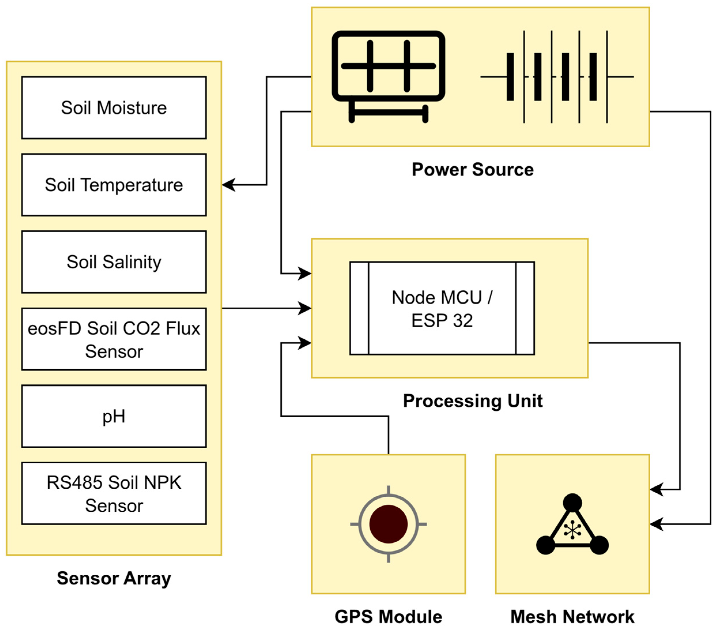 | Soil Temperature | DS18B20 Waterproof Temperature | Analog Devices, Bangalore, Karnataka, India | Monitors soil temperature, which has a direct influence on the microbial activity, nutrient availability, and seed germination. |