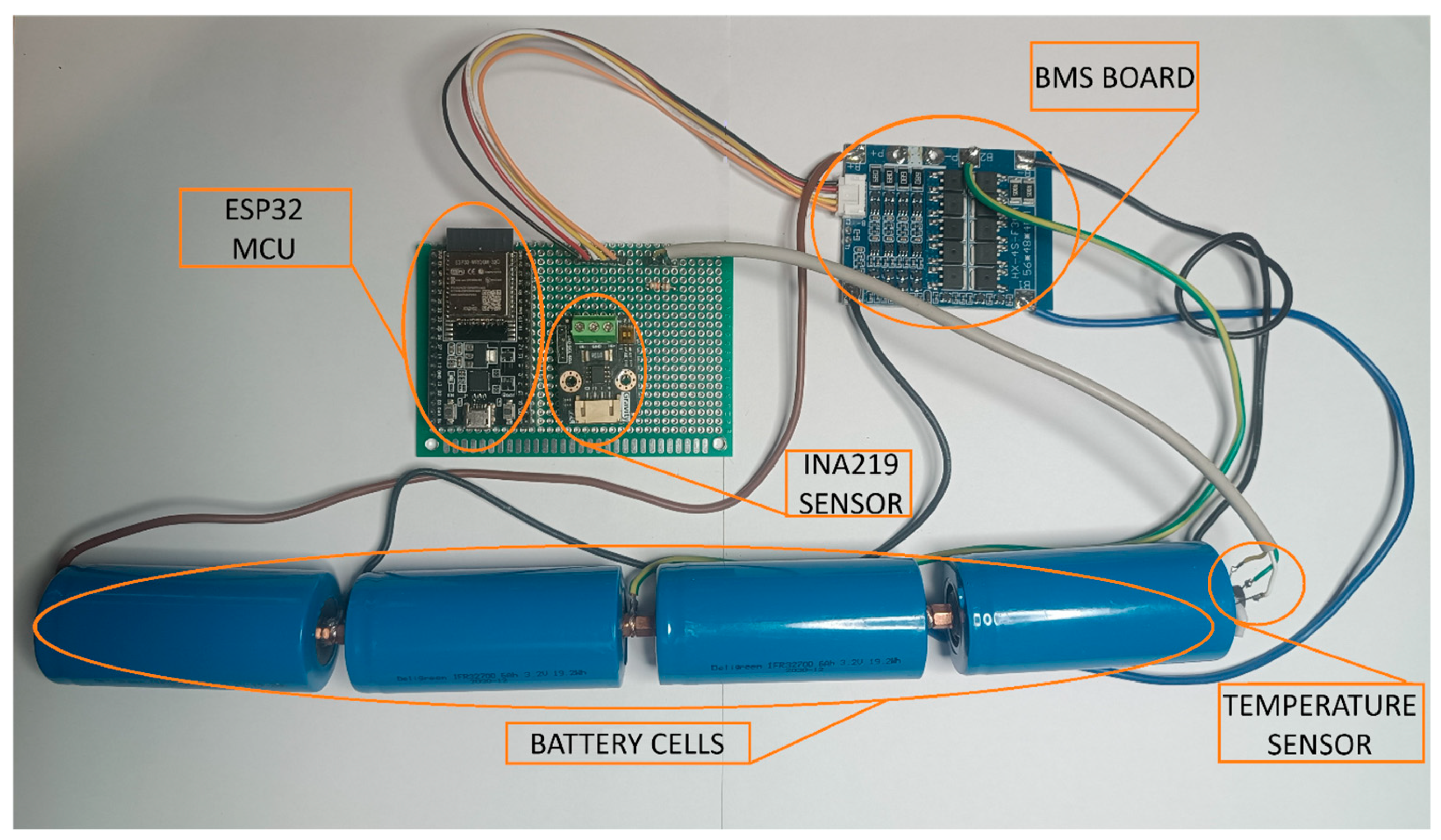 - Rimpas, D.; Orfanos, V.A.; Chalkiadakis, P.; Christakis, I. Design and Development of a Low-Cost and Compact Real-Time Monitoring Tool for Battery Life Calculation. Eng. Proc. 2023, 58, 17. [Google Scholar]