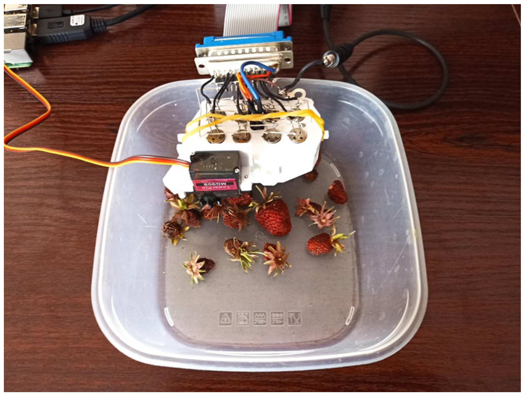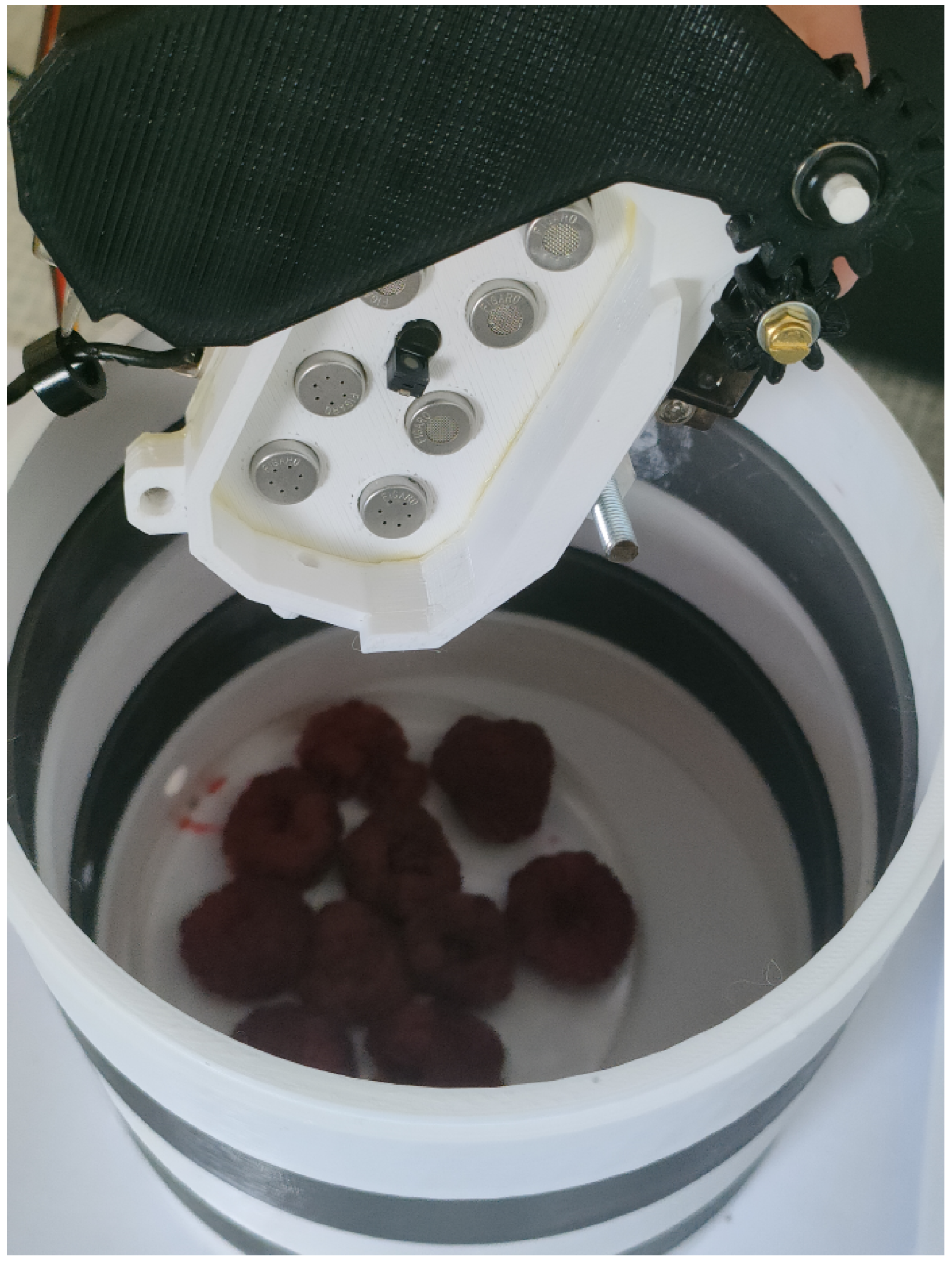 A handful of fresh strawberries was put inside a plastic box, and the electronic nose sensor array was applied to the box as it is presented in