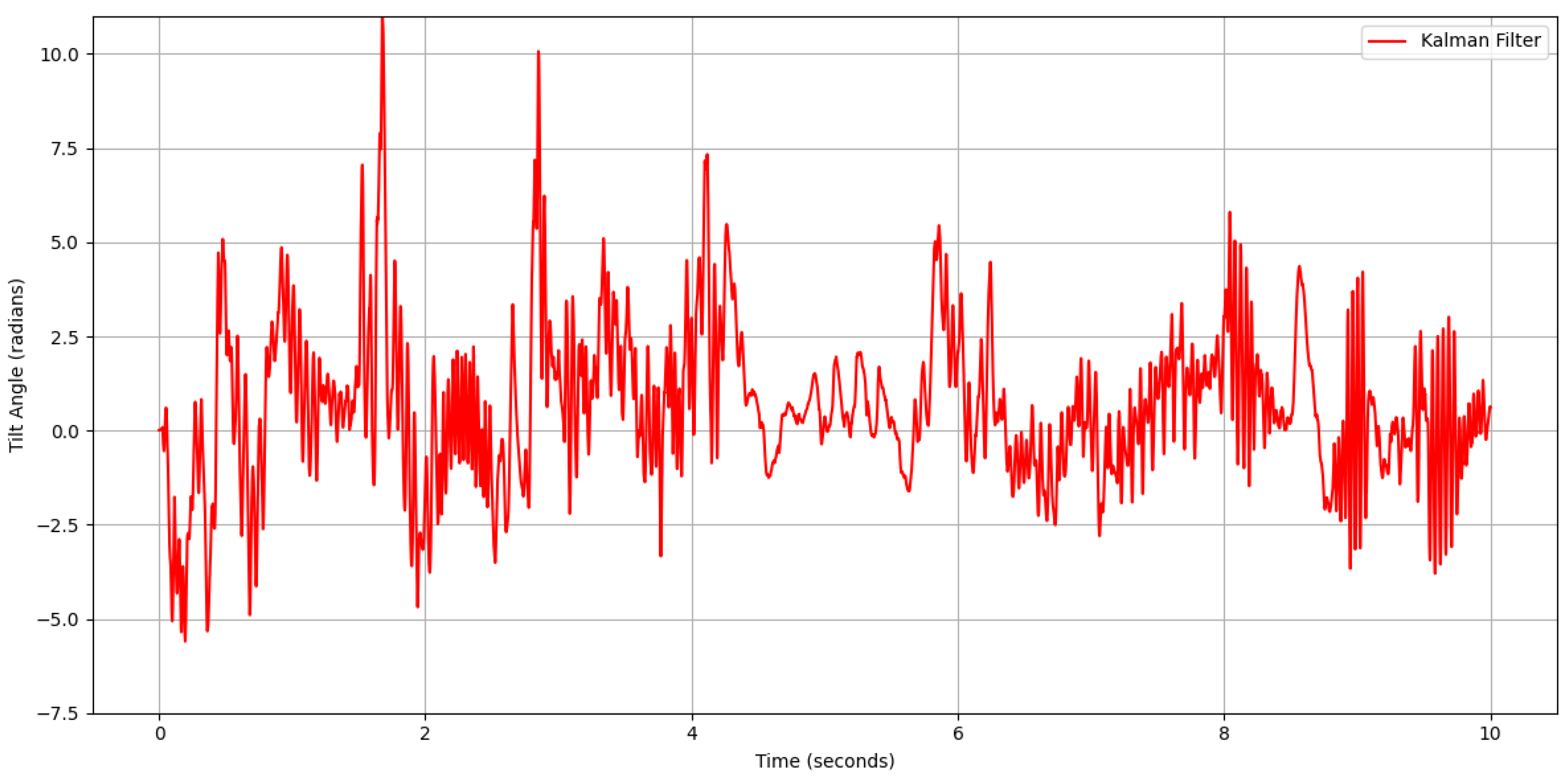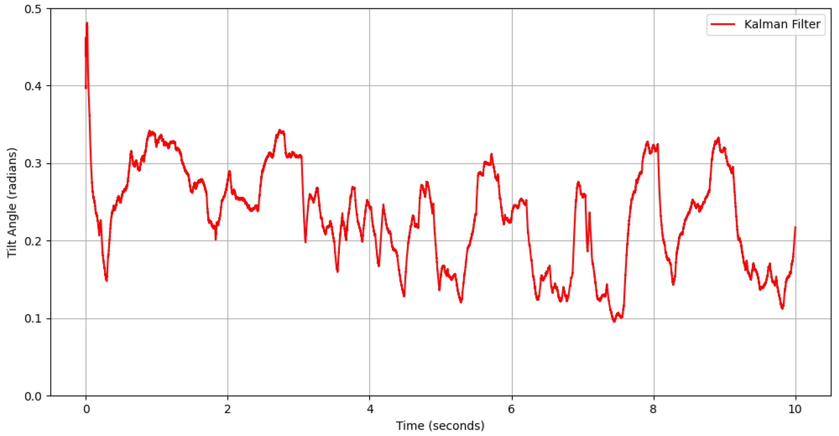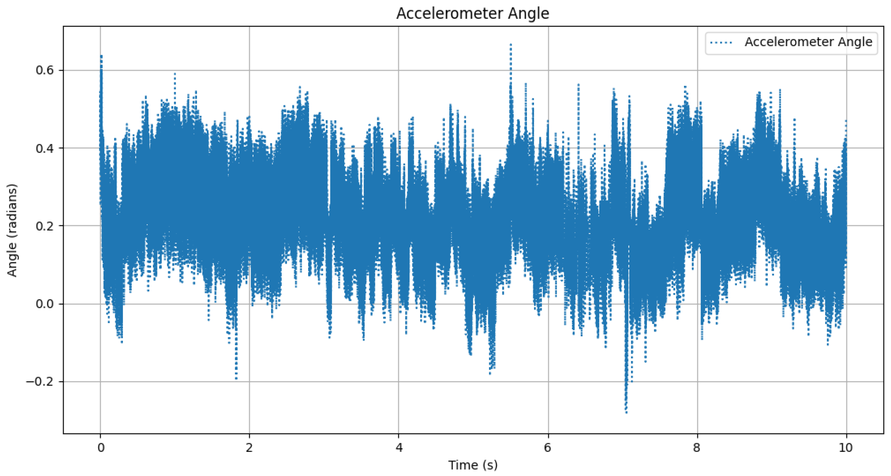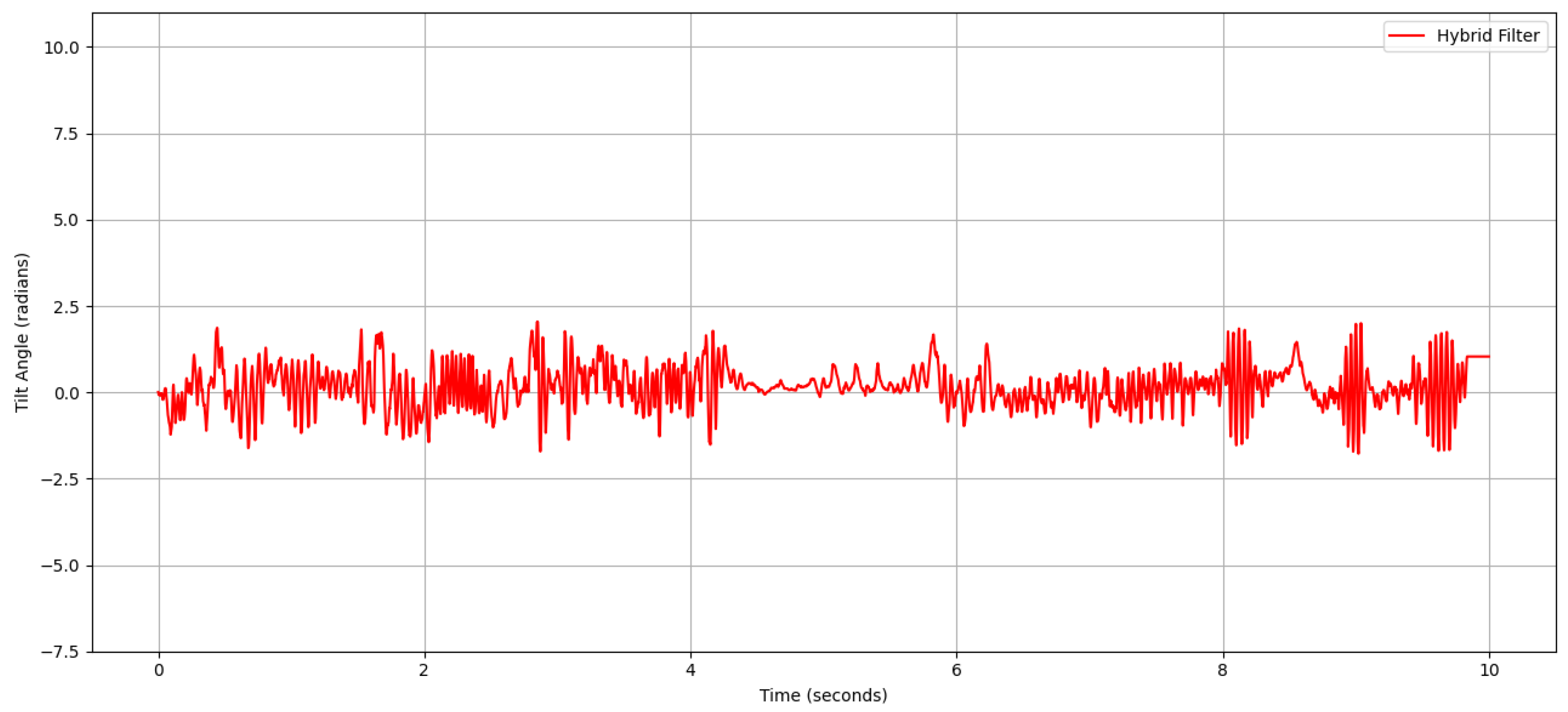 The low-pass filter smooths brief fluctuations by gradually accumulating changes over time. For example, if an accelerometer reading jumps to 10 degrees, the complementary filter ensures a gradual rise without spikes, depending on filter parameters and sampling rate. Meanwhile, the high-pass filter counteracts gyroscope drift by allowing for short-duration signals while filtering long-term variations, ensuring accurate angle estimation [