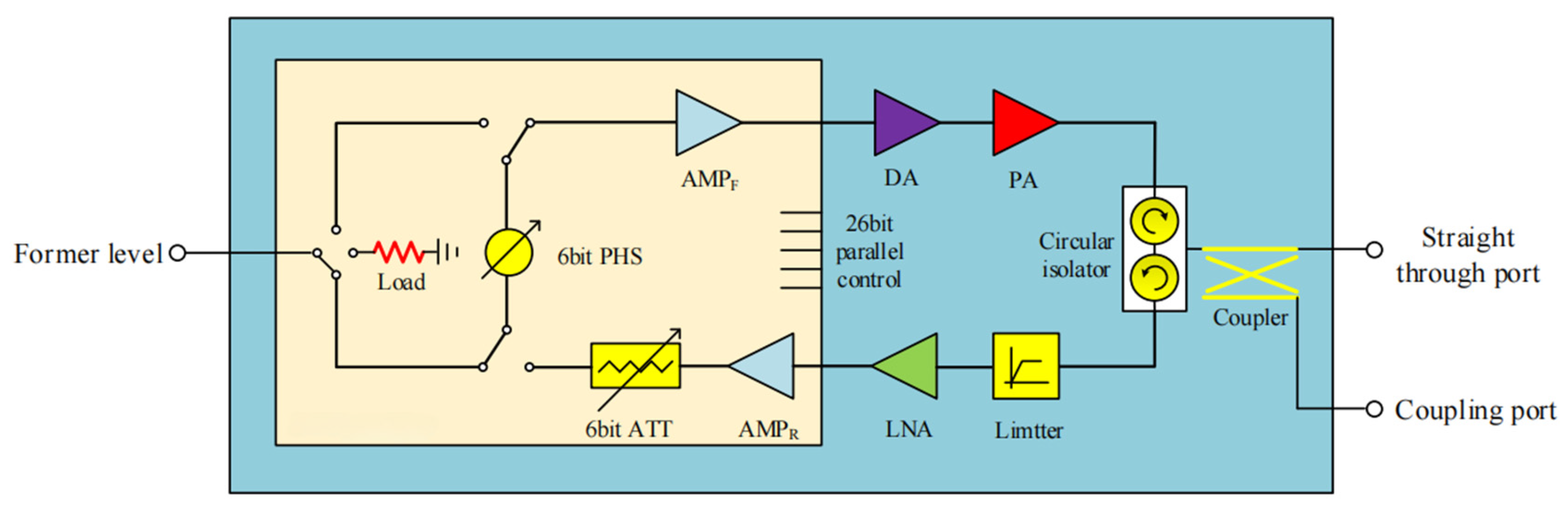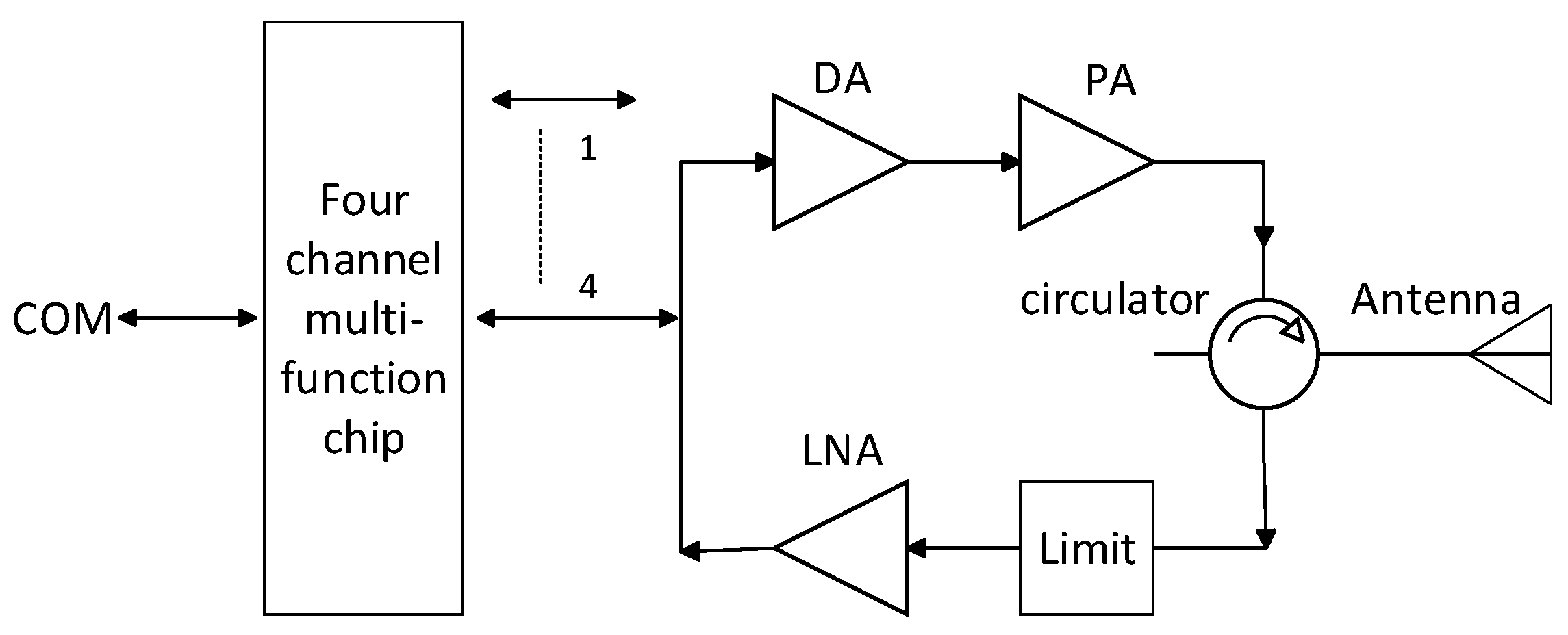 - Liu, X.; Xie, Y.-Z.; Xu, Z.; Yu, Z.-J. Study and implementation of an X-band four-channel T/R module based on stripline. Electron. Compon. Mater. 2019, 38, 79–83. [Google Scholar]