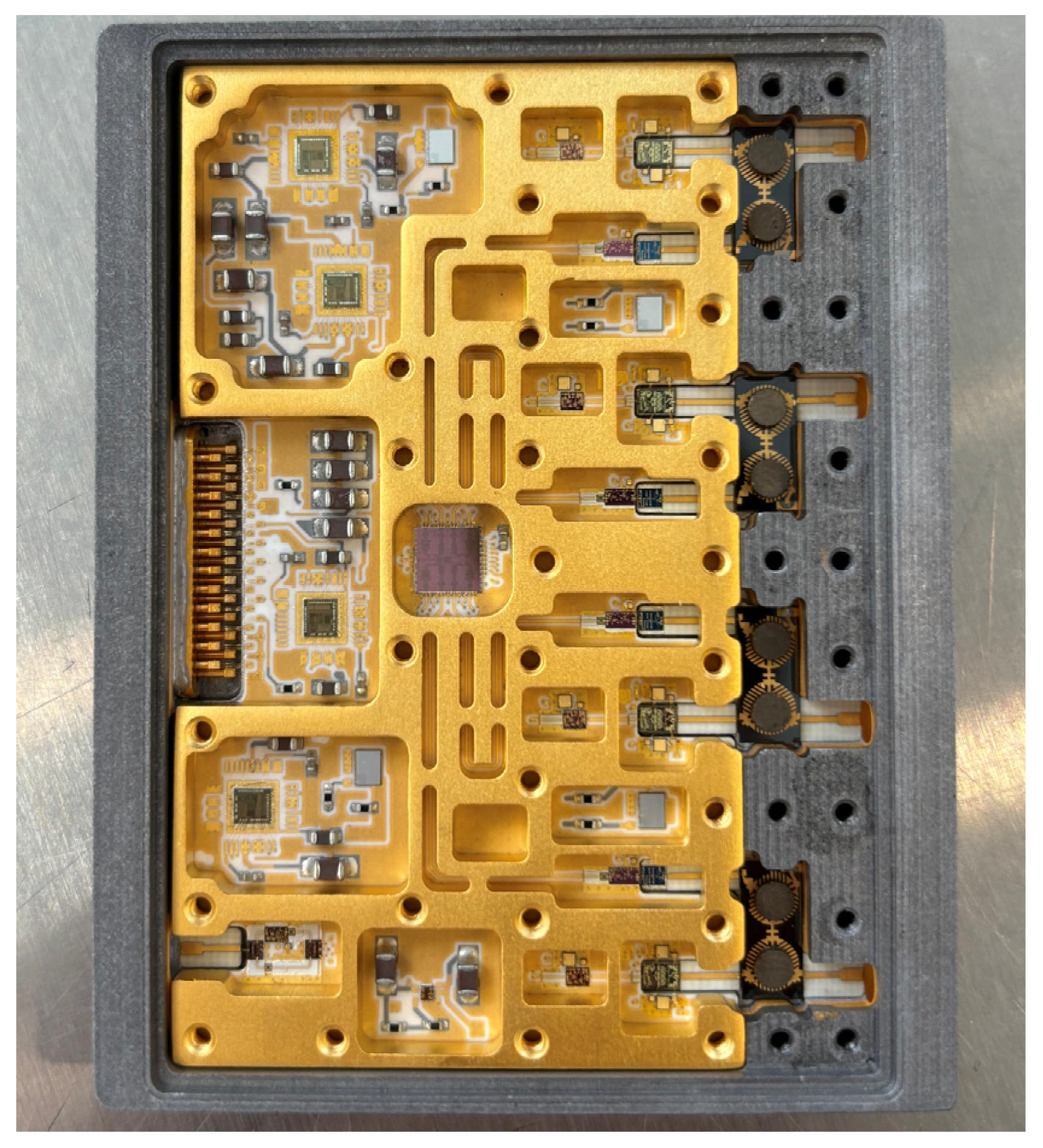 - Bhavsar, M.L.; Kumar, P.; Chaturvedi, I. LTCC Based Multi-Chip Modules at C-Band and Ka-Band for Satellite Payloads. In Proceedings of the 2017 IEEE MTT-S International Microwave and RF Conference (IMaRC), Ahmedabad, India, 11–13 December 2017; pp. 1–5. [Google Scholar]