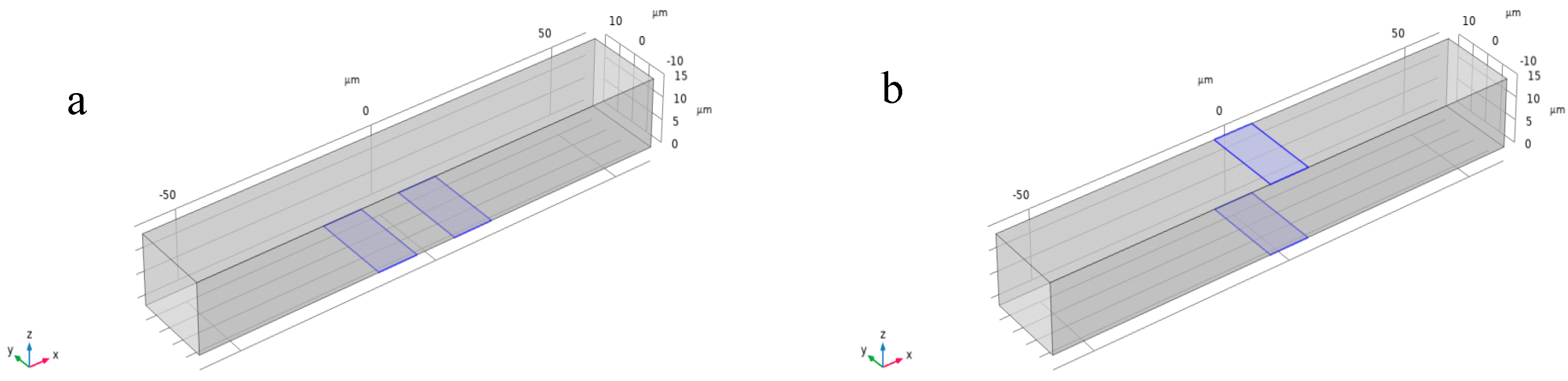 We analyzed two baseline electrode configurations, coplanar electrodes and parallel electrodes, as shown in