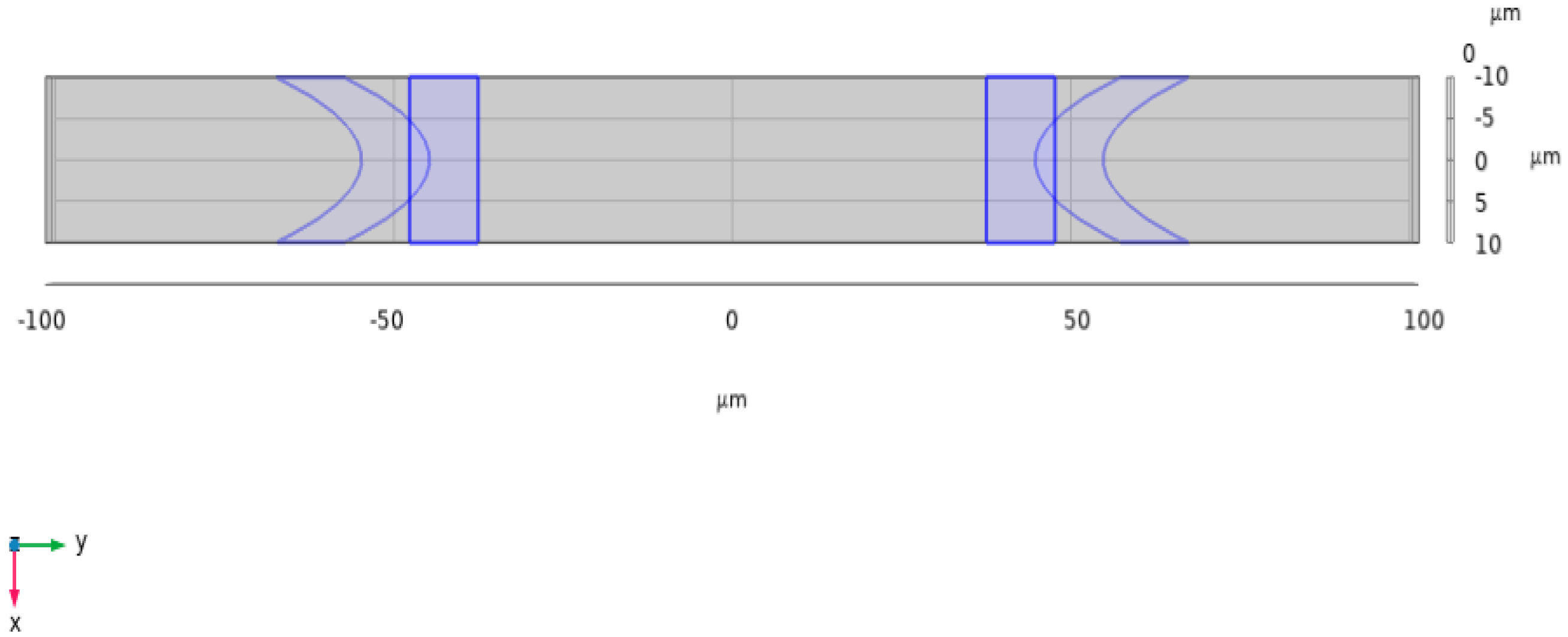 However, in practical microfluidic channels, the velocity profile is not uniform but exhibits a spatial gradient. Specifically, it manifests as a parabolic decrease in velocity from the maximum at the center towards zero at the channel walls. Therefore, electrode design for characterizing lateral cell position must account not only for positional differences but also for the associated velocity differences at various lateral positions. Based on the parabolic fluid velocity distribution, parabolic-shaped electrodes were designed as shown in