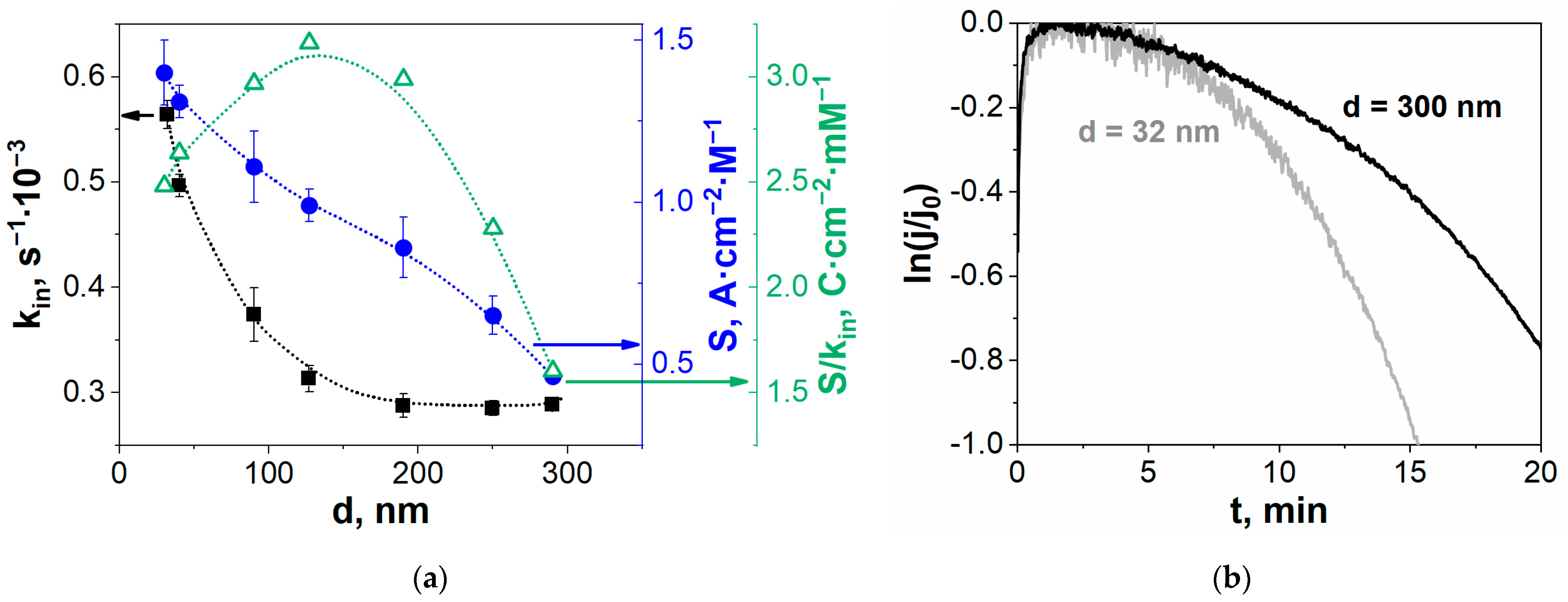 - Komkova, M.A.; Karpova, E.V.; Sukhorukov, G.A.; Sadovnikov, A.A.; Karyakin, A.A. Estimation of Continuity of Electroactive Inorganic Films Based on Apparent Anti-Ohmic Trend in Their Charge Transfer Resistance. Electrochim. Acta 2016, 219, 588–591. [Google Scholar] [CrossRef]
