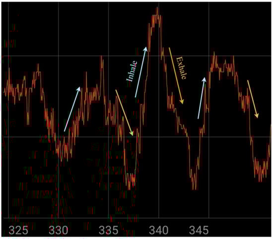 The designed respiratory monitoring system introduces a number of novel design elements and satisfies the desired functional requirements. The selection of proper elements in the structure of the sensor, as well as innovative design approaches, ensure a high resolution of 12 bits for capturing respiratory signals and a long battery life. Also, the size of the device makes it portable and convenient for patient use. Moreover, it provides a system for sending notifications and communicating between the device and its user. Figure 8 demonstrates the system’s ability to capture detailed respiratory waveforms, highlighting clear inhale and exhale phases during real-time usage, which reflects both the precision of signal acquisition and the device’s responsiveness to chest motion.