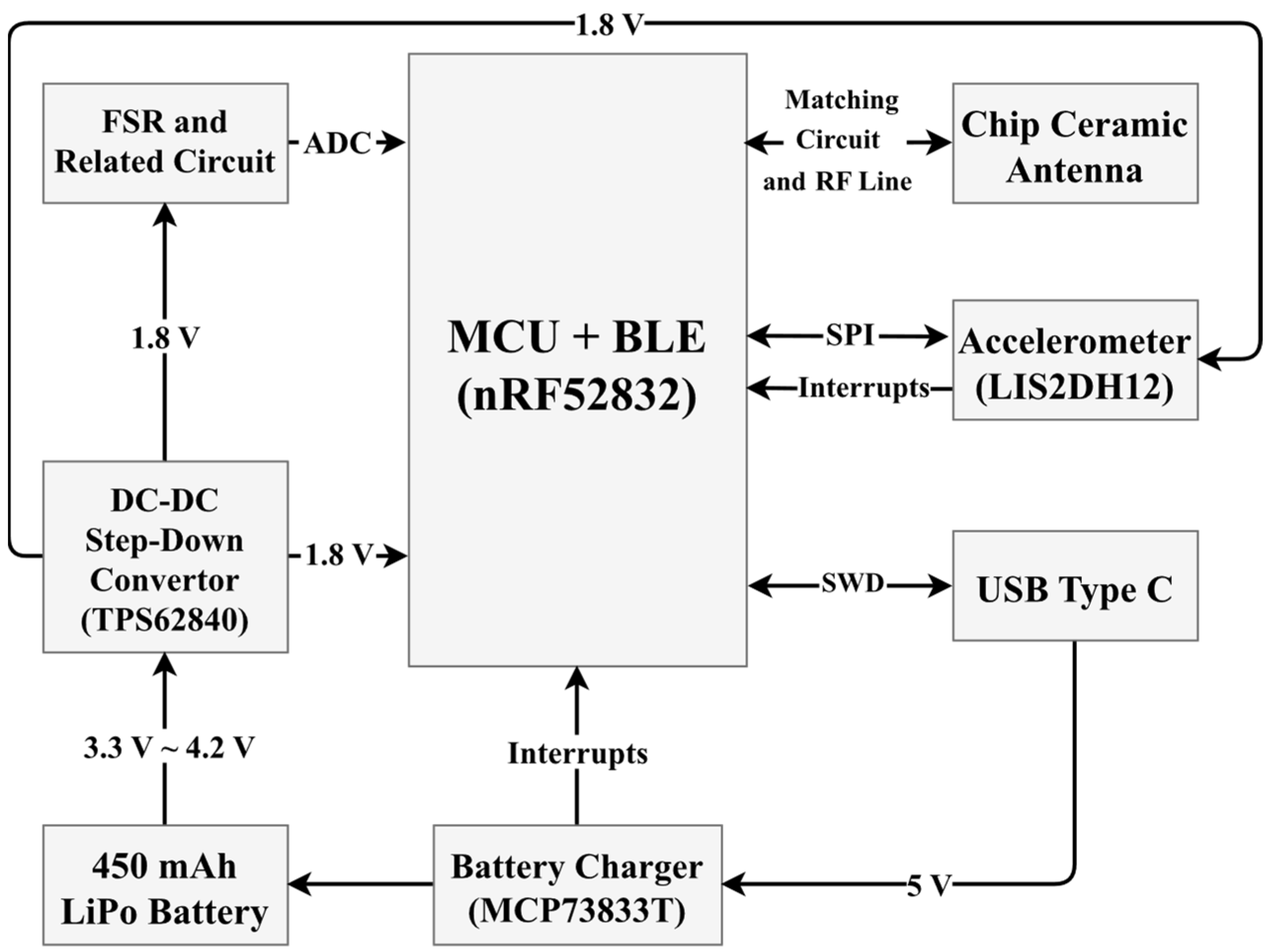 - Nordic Semiconductor. nRF52832 Product Specification v1.4, Version 1.4; 10 October 2017. Available online: https://infocenter.nordicsemi.com/pdf/nRF52832_PS_v1.4.pdf (accessed on 21 July 2025).