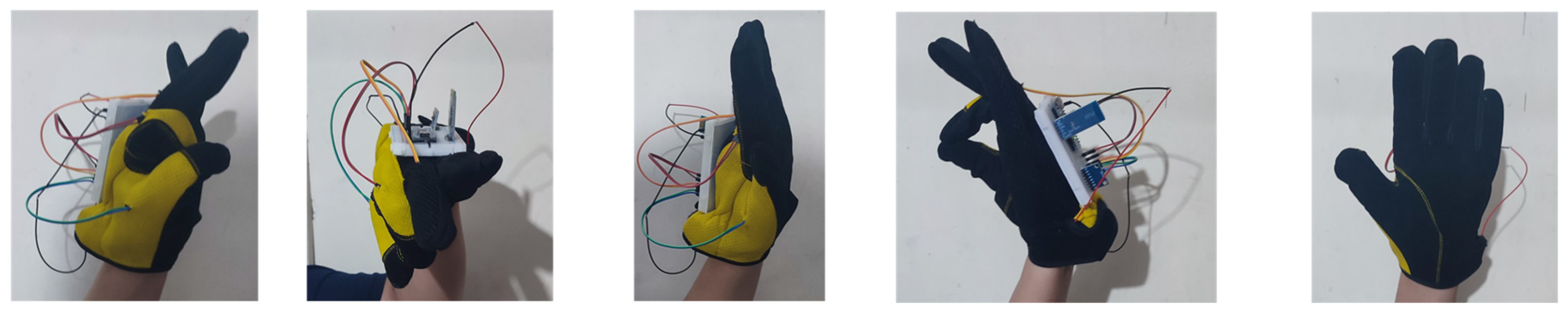 - Saeed, Z.R.; Zainol, Z.B.; Zaidan, B.B.; Almoodi, A.H. A systematic review on systems-based sensory gloves for sign language pattern recognition: An update from 2017 to 2022. IEEE Access 2022, 10, 123358–123377. [Google Scholar] [CrossRef]