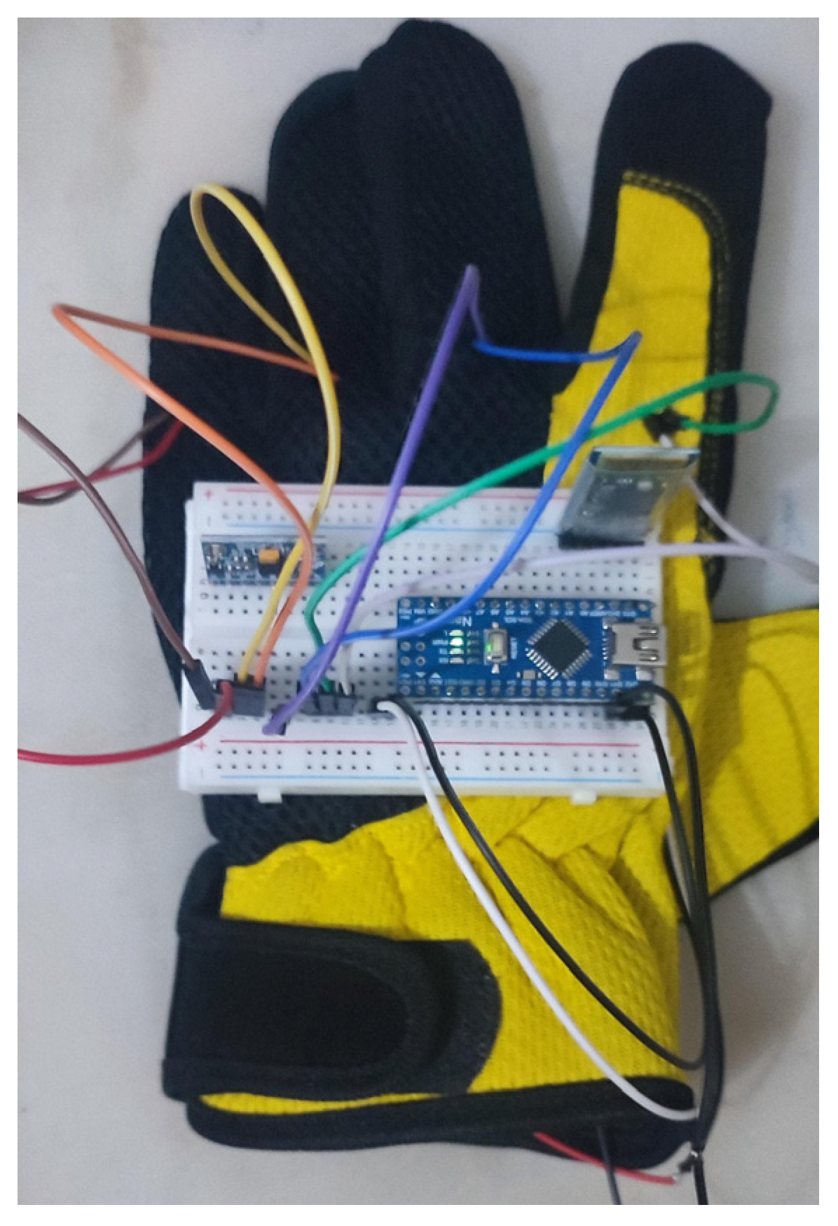 Figure 4 shows the sensory glove system’s main components for Pakistan Sign Language (PSL) identification. An Arduino microcontroller [