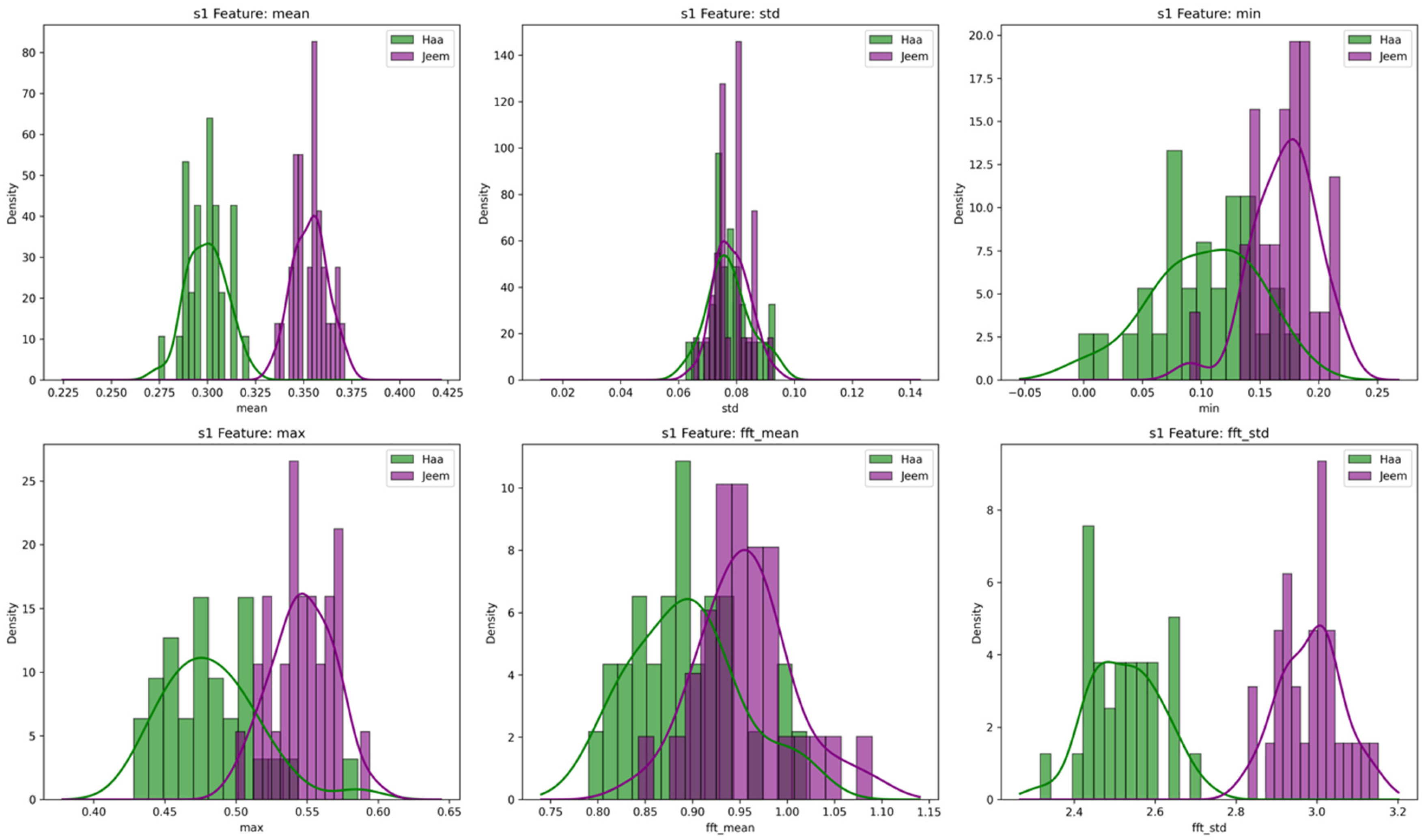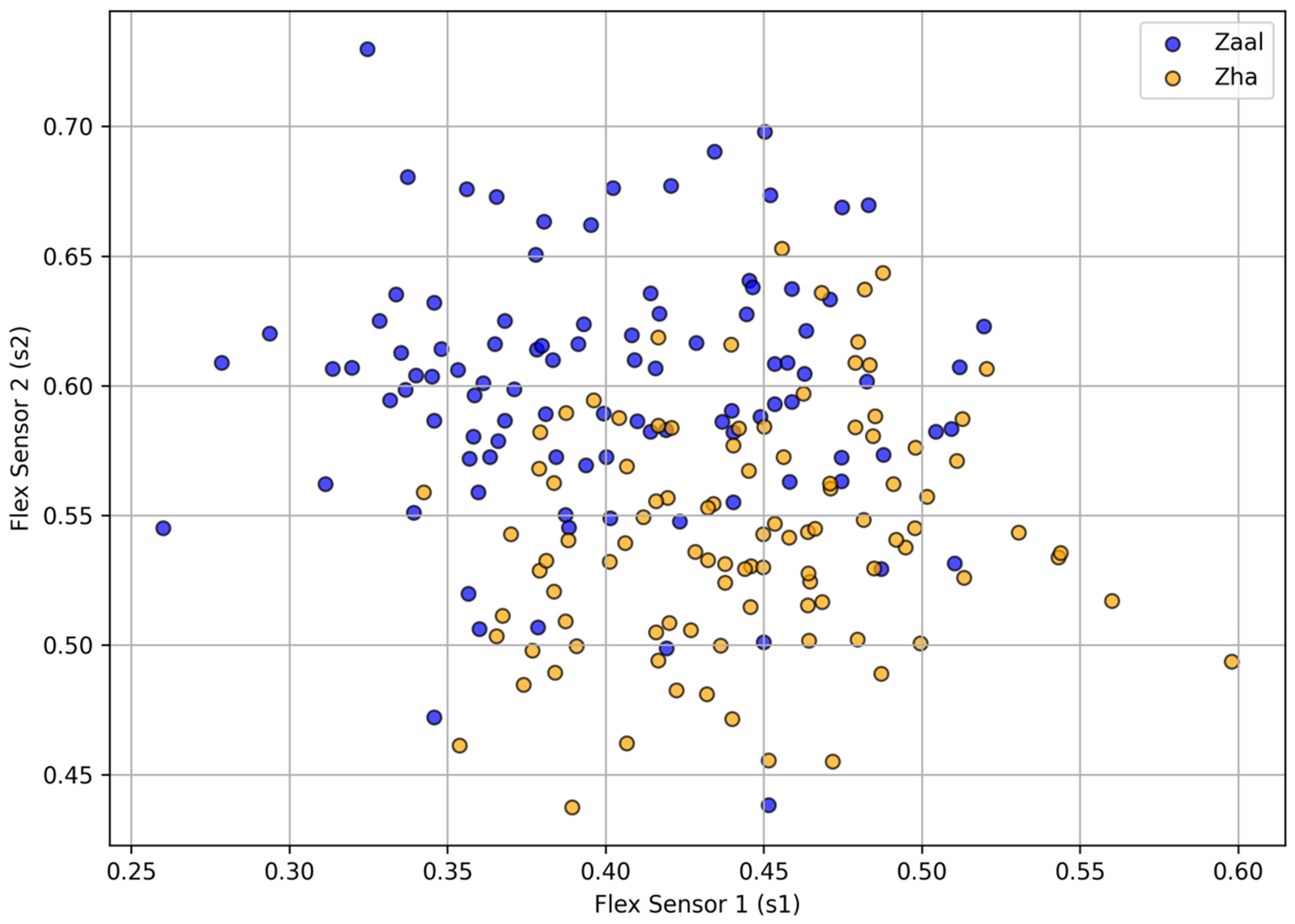 A crucial discovery from the plots is that broader or taller boxes in either the accelerometer or flex sensor data imply a higher standard deviation, frequently linked with greater movement or unpredictability in the gesture. The accelerometer plots of static PSL movements like letter representations reveal no or very narrow boxes, indicating negligible hand movement. Dynamic gestures, like as the PSL sign for “السلام علیکم” (peace be upon you), have bigger boxes in accelerometer data because of their strong motion.