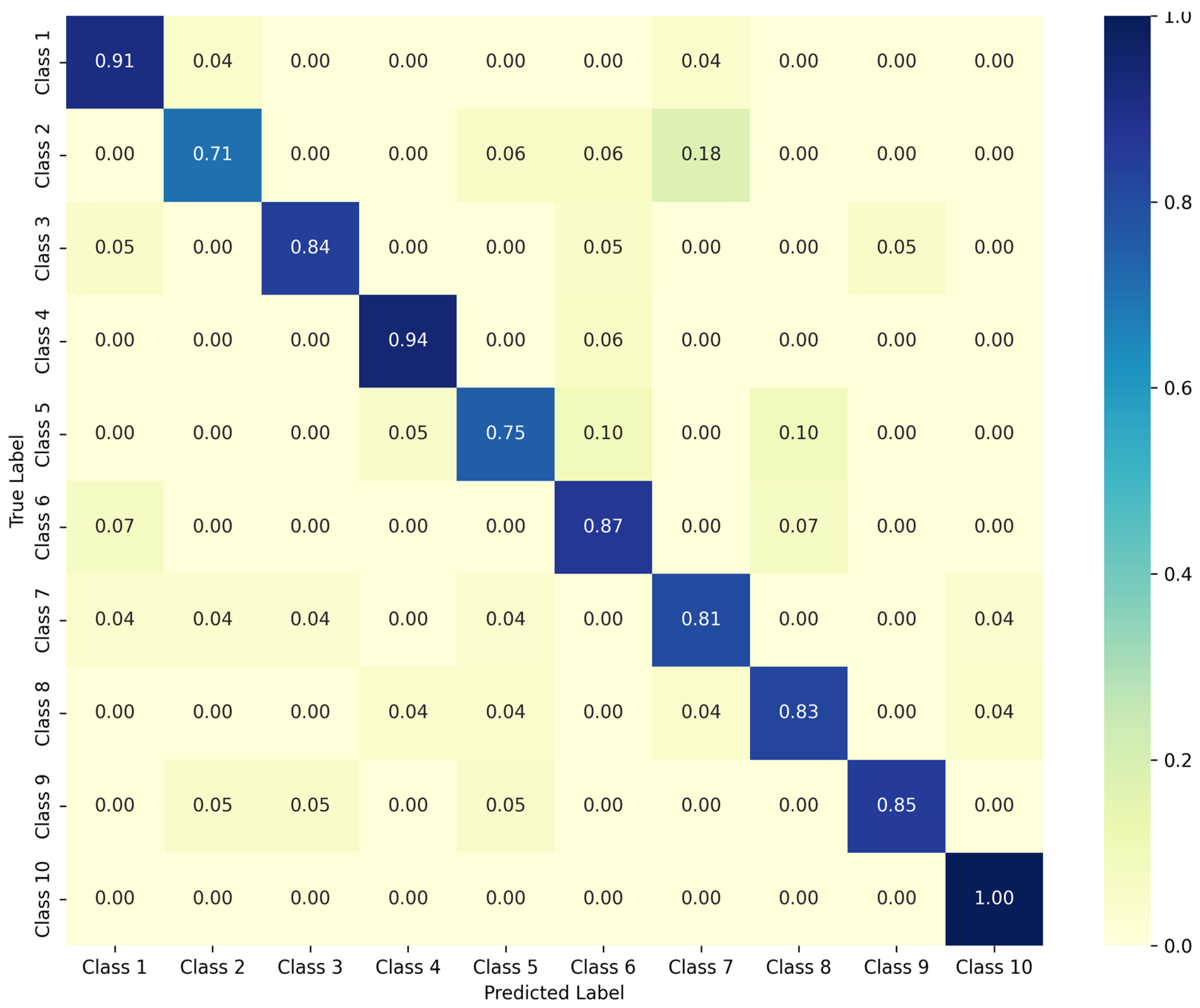 To categorize PSL signals, the SVM-FE model uses a linear kernel to produce a straight-line (or hyperplane) decision boundary in feature space. The model outputs probability estimates for each class instead of only the most likely label. This probabilistic output aids ambiguous gesture decision-making.
