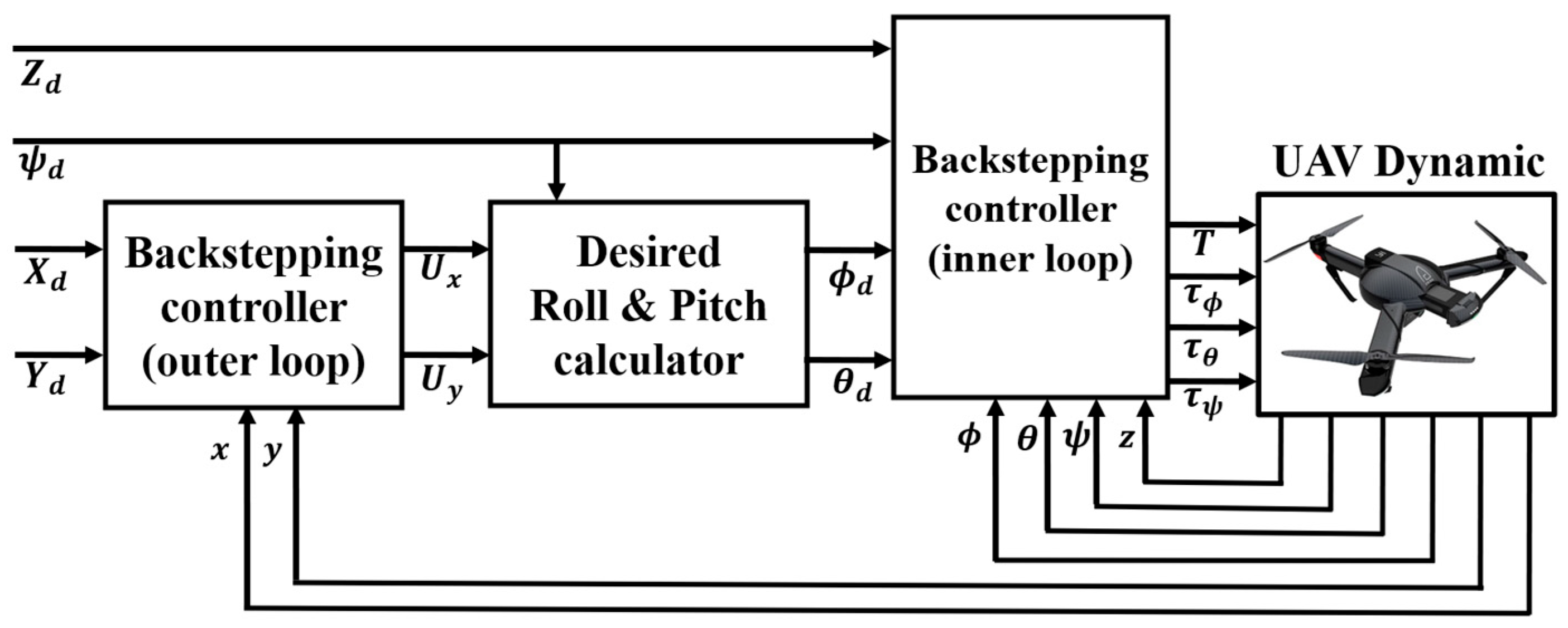 3.2. Position and Attitude Control Laws
