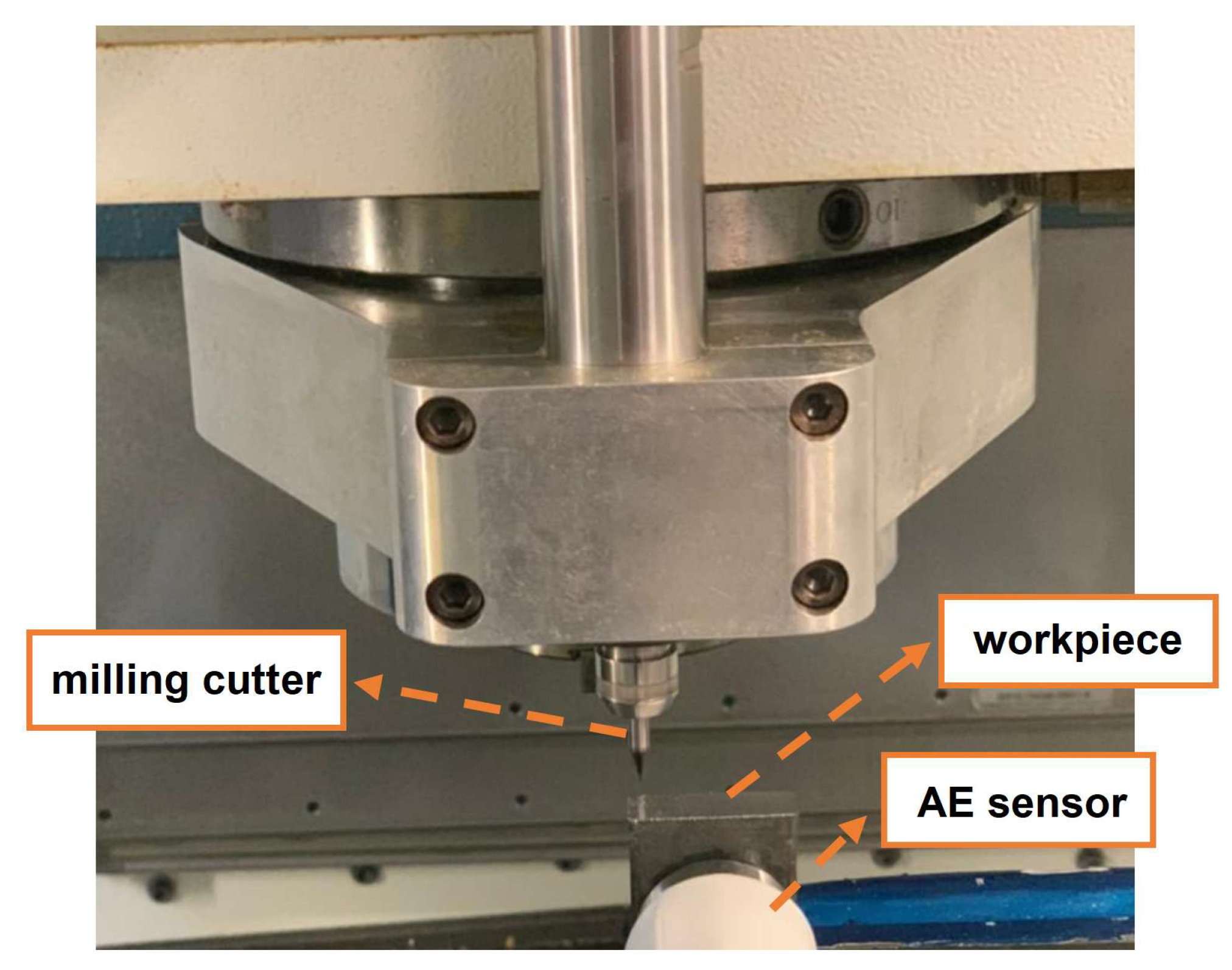 - Mokhtar, N.; Ismail, I.Y.; Asmelash, M.; Zohari, M.H.; Azhari, A. Analysis of acoustic emission on surface roughness during end milling. ARPN J. Eng. Appl. Sci. 2017, 12, 1324–1328. [Google Scholar]