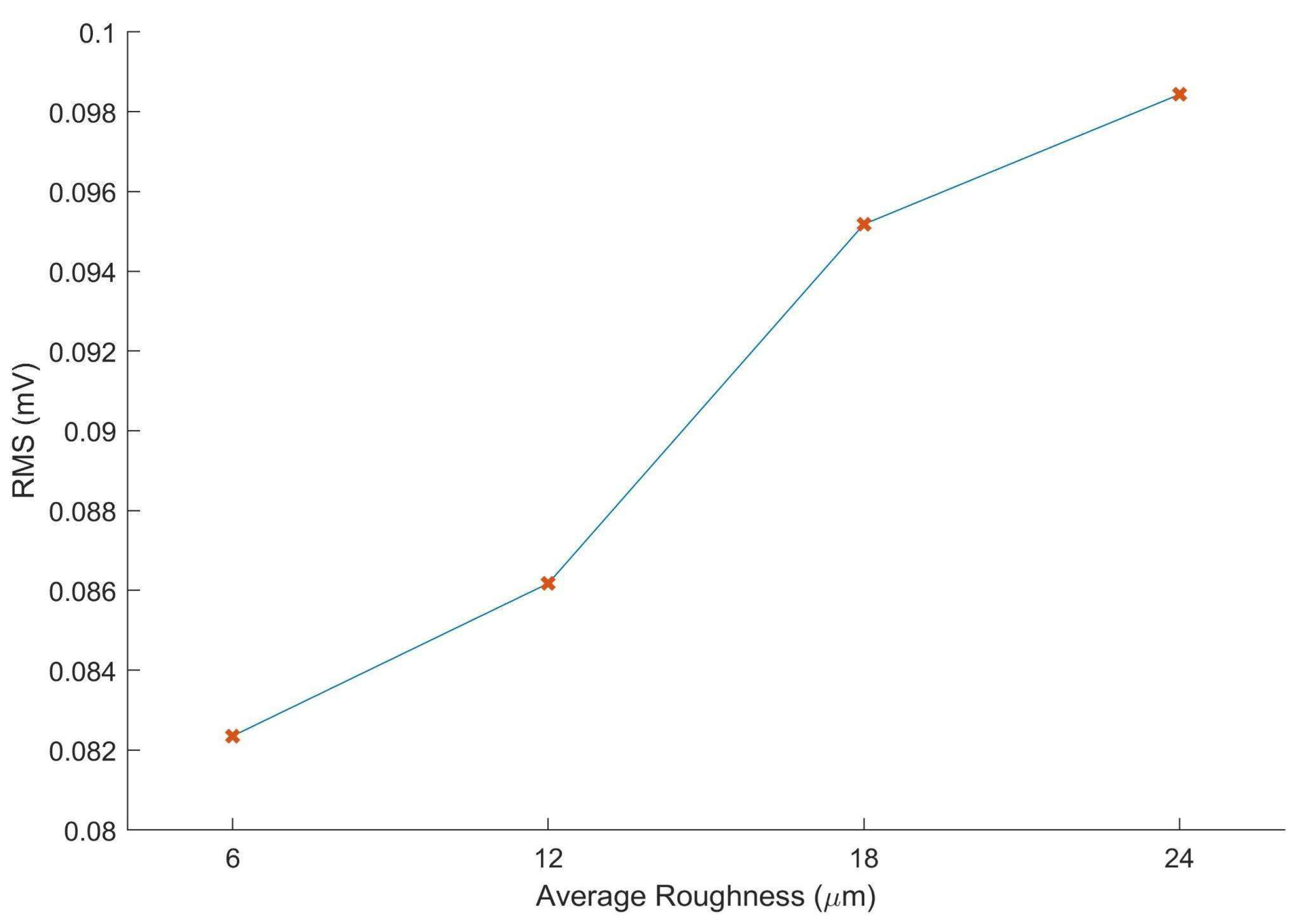 The chosen parameter to estimate roughness levels was the RMS within selected frequency bands. The criteria to select a band were that it must contain a concentrated amount of energy so that it has a larger signal-to-noise ratio and carries relevant information and also presents a distinct shape for each roughness level, enabling its identification. After several tests, it was noticed that the chosen parameter (band RMS) behaves as an S–curve as the theoretical surface roughness increases, as represented in