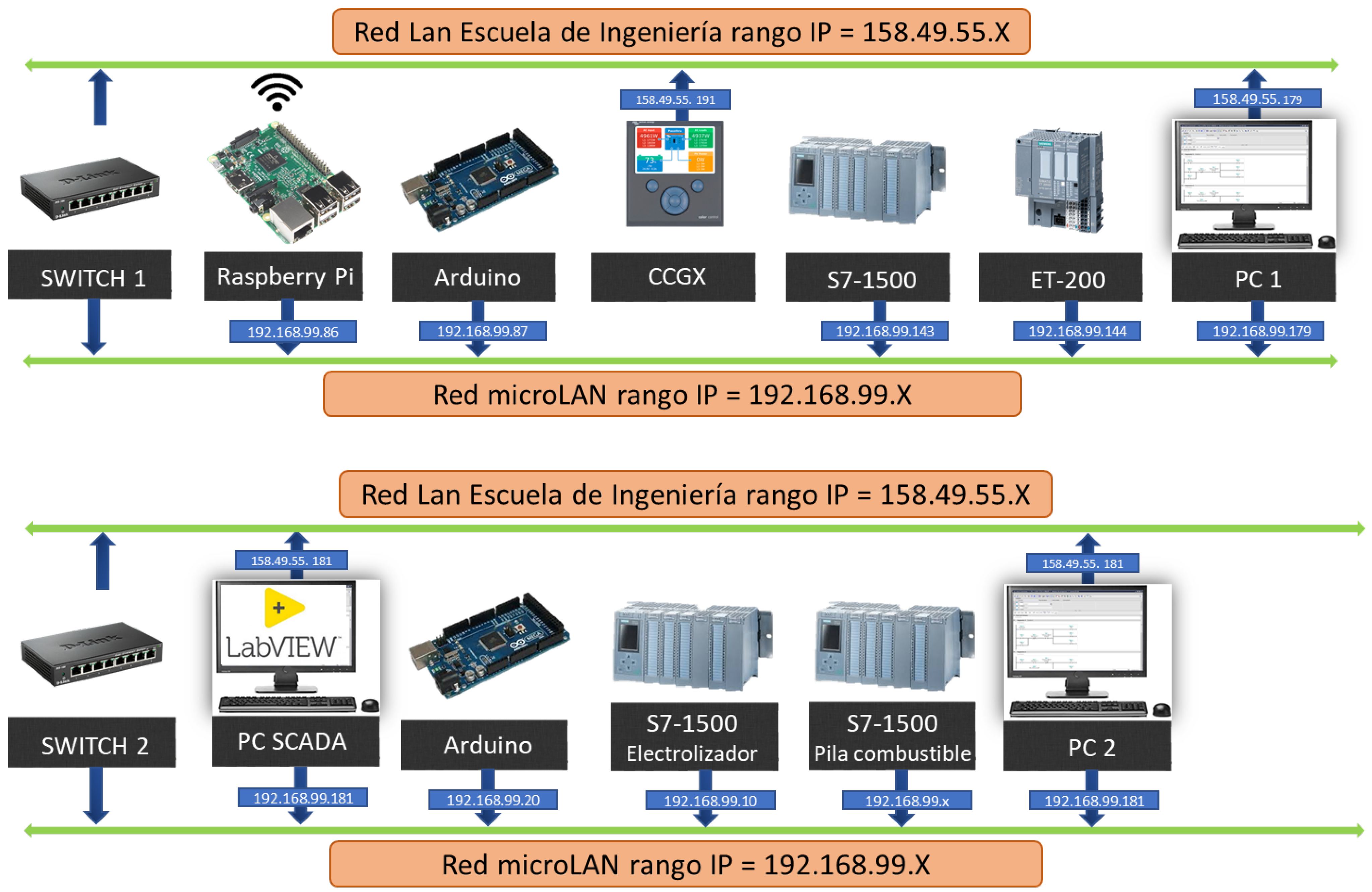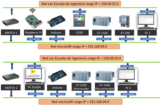 As previously mentioned, a distributed control system has been developed both for the management of the SMG and for controlling the operation of all its components. This system is distributed across two laboratories, D1.20 and D2.20. Each laboratory is equipped with a network switch connected to the Local Area Network (LAN) of the School of Industrial Engineering. Both switches are interconnected to form a micro-LAN, enabling communication among all components of the SMG’s control and data acquisition system.