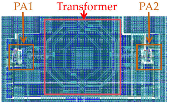 Figure 2 shows the complete PA schematic proposed in this paper. The PA is designed in a 40 nm CMOS process and consists of two differential amplifier stages. Both stages use neutralization capacitors to improve gain, reverse isolation, and stability. The two-stage amplifier circuit is combined through a transformer to increase the maximum output power.