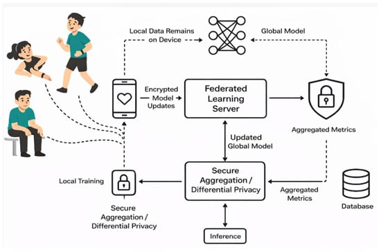 - Das, S.; Dutta, S.; Hazra, S.; Nandi, S.; Bandyopadhyay, A.; Disha, M. Personalized Healthcare Empowered: Federated Learning Integration with Wearable Device Data for Enhanced Patient Insights. In Proceedings of the 2024 IEEE Region 10 Symposium (TENSYMP), New Delhi, India, 27–29 September 2024; IEEE: Piscataway, NJ, USA, 2024; pp. 1–6. [Google Scholar]