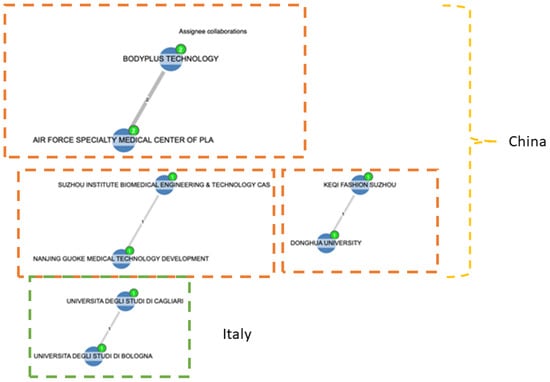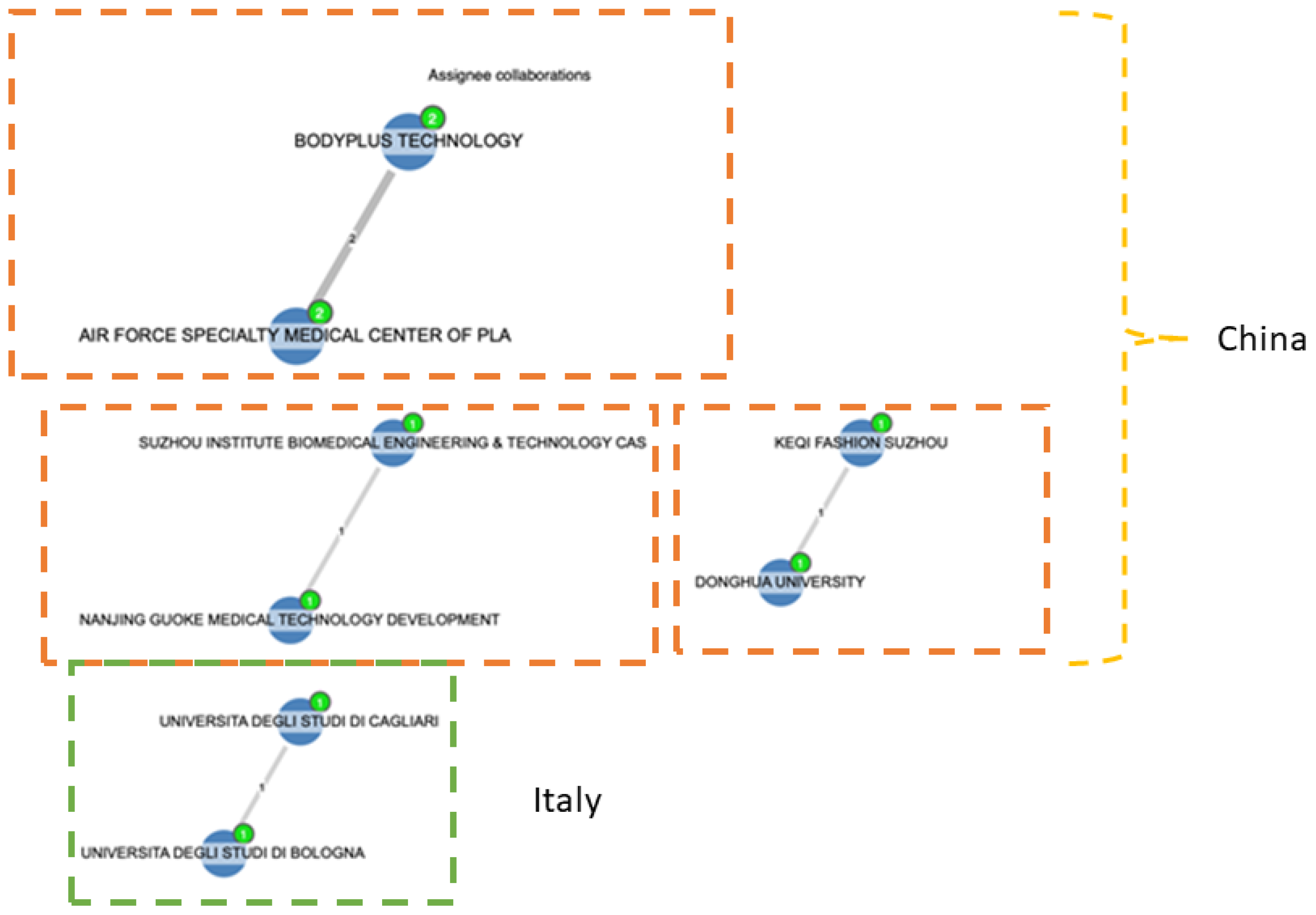 Figure 4 shows a co-ownership graph of patents, in which four pairs of actors from Italy and China are represented.