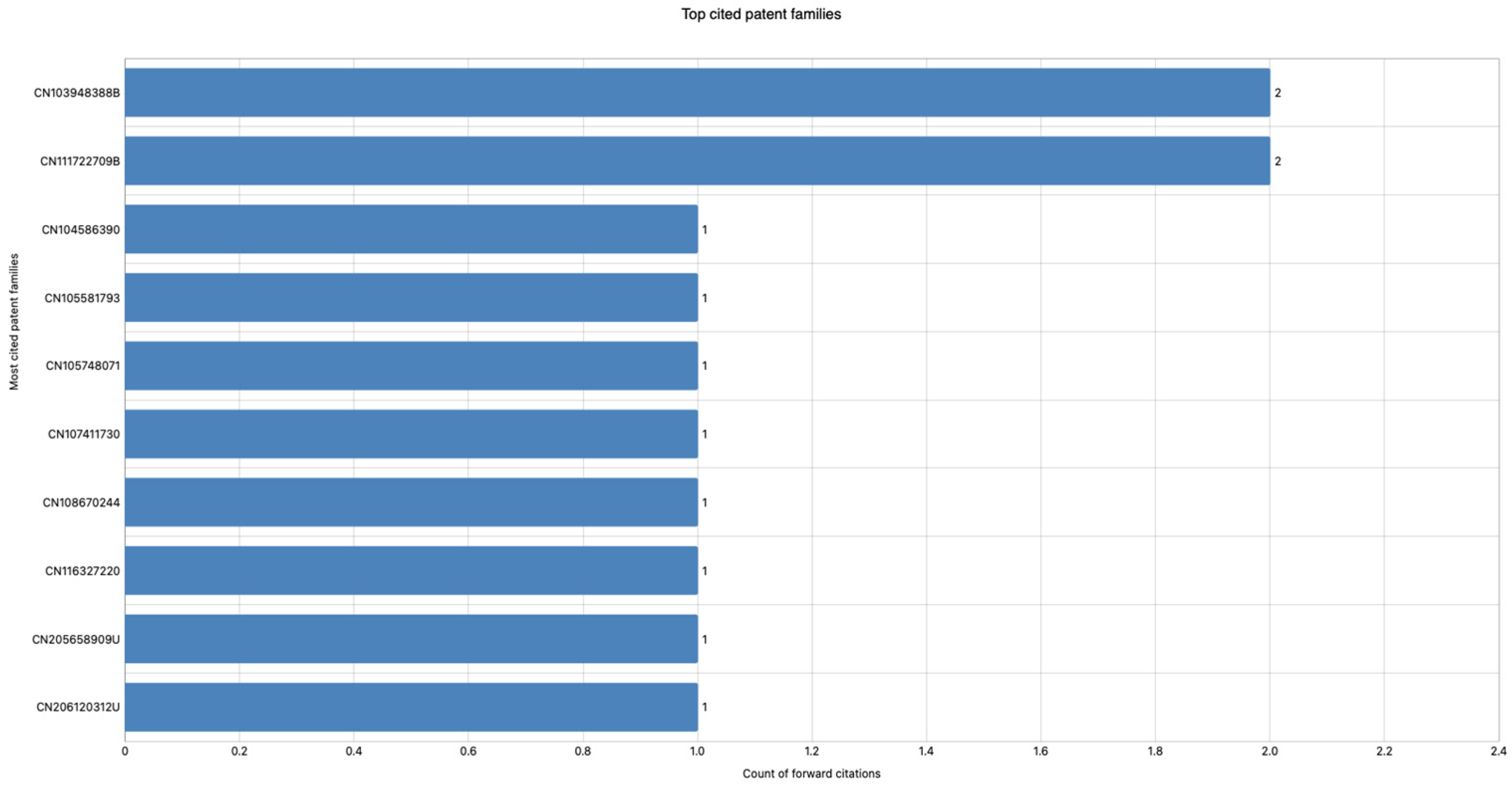 Figure 7, the most frequently cited patents and patent applications were identified to originate from China.