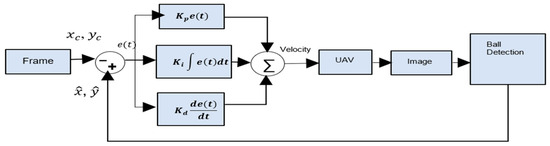 This section describes the Proportional–Integral–Derivative (PID) controller used to steer the drone, enabling smooth and safe tracking of the ball. Leveraging state estimates from the Kalman filter, the UAV autonomously adjusts its motion to follow the ball’s trajectory. Figure 4 provides an overview of the control architecture.