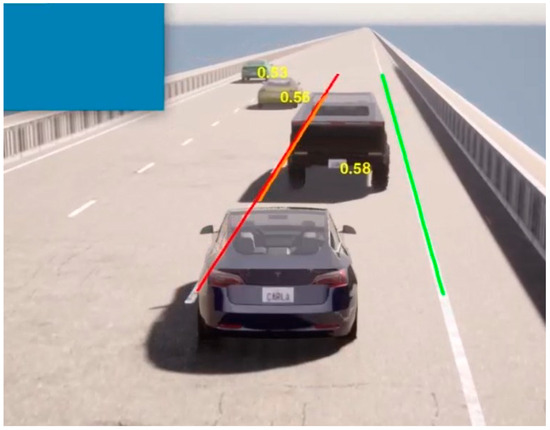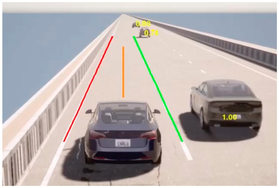 In the tests conducted in the CARLA simulation environment, the OLA submodule was evaluated under various autonomous driving scenarios (such as lane keeping, lane changing, and speed control). It was successfully operated using information from the world model, and the results were observed to be consistent with the expected attention values. In both lane-keeping and lane-changing scenarios, the submodule demonstrated its ability to generate meaningful and usable attention values based on the EGO vehicle’s waypoints as well as the distance, heading, and speed of the vehicles in the current and upcoming lanes.