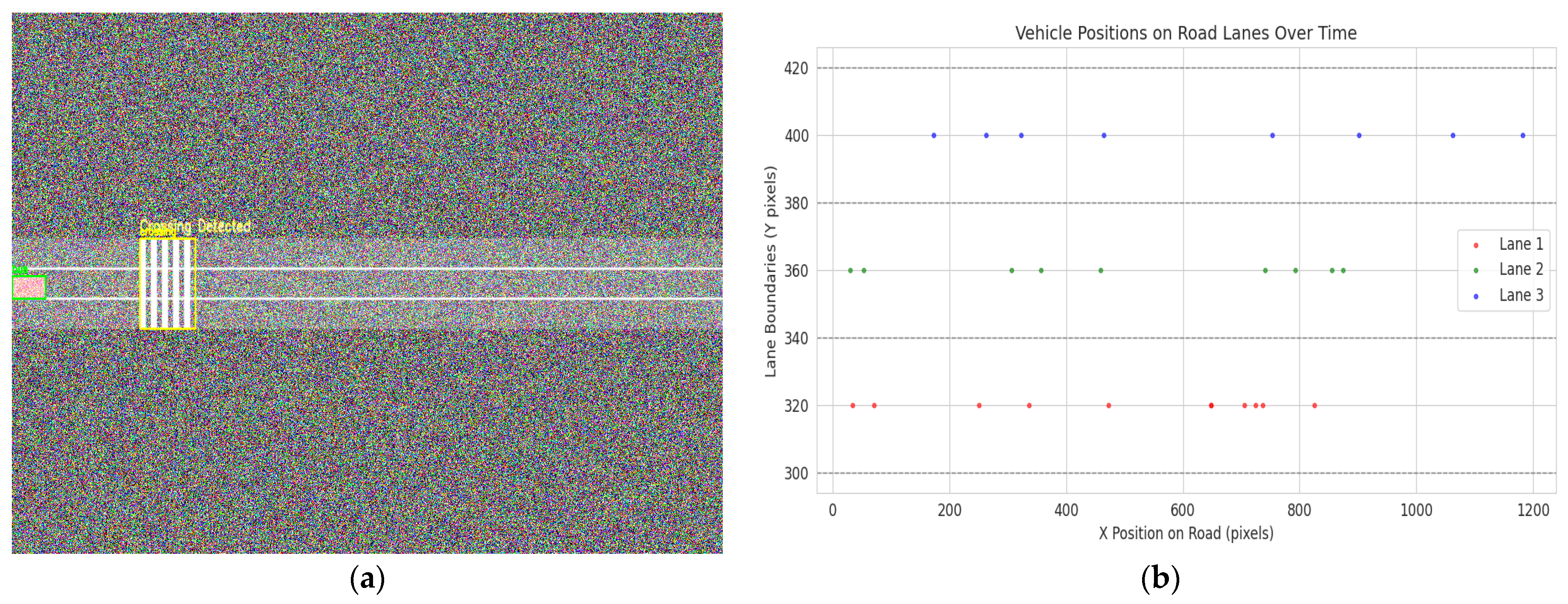 Figure 3a defines the output process by the proposed model detecting sudden events in crossing, and