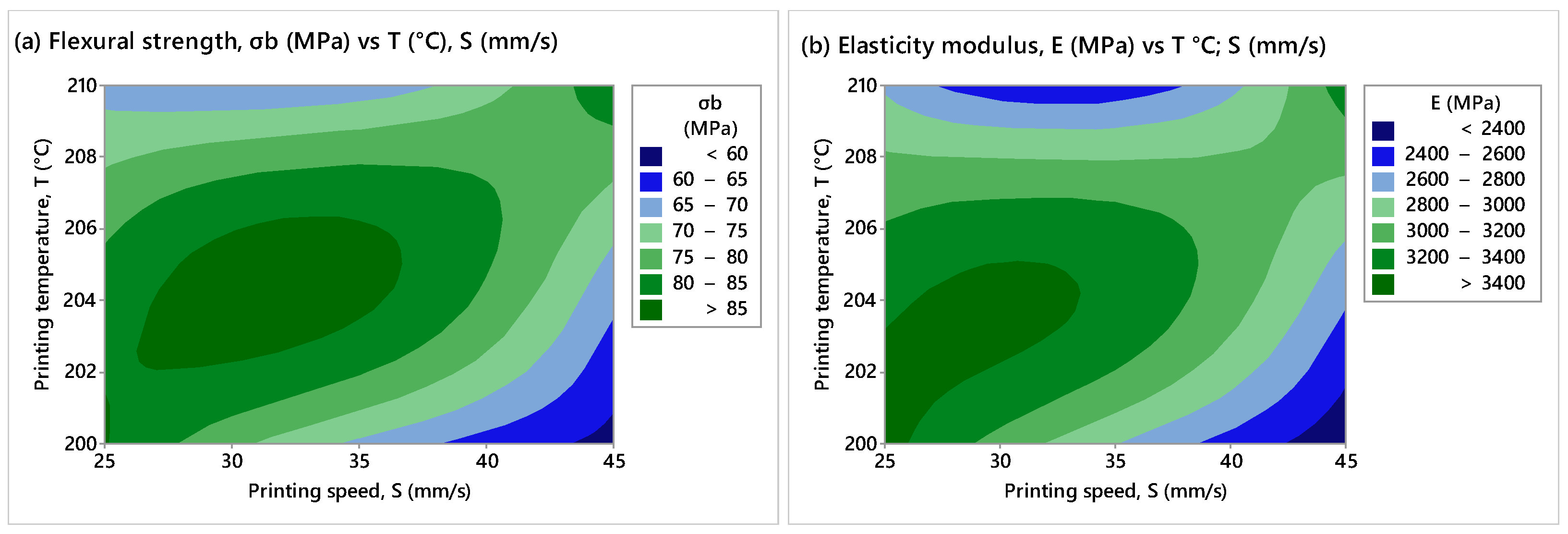| Printing temperature, T (°C) | 200 | 205 | 210 |