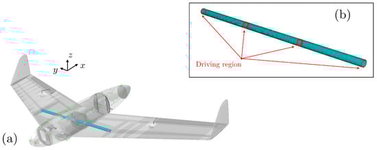 The critical component considered in this work is the aluminum tube that connects the fuselage to the wings of a UAV structure, as shown in Figure 2a. This component is subjected to repeated cyclic loading during flight, which makes it highly susceptible to fatigue-induced crack nucleation. We are interested in the localized displacement responses corresponding to the region that drives the local submodel, i.e., the driving region, in Figure 2b. These embed the effects of the general complexity of the UAV assembly and the inherent variability in various structural components across the fleet.