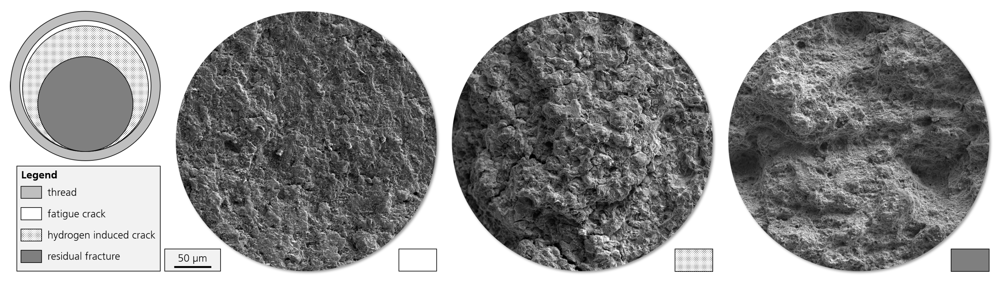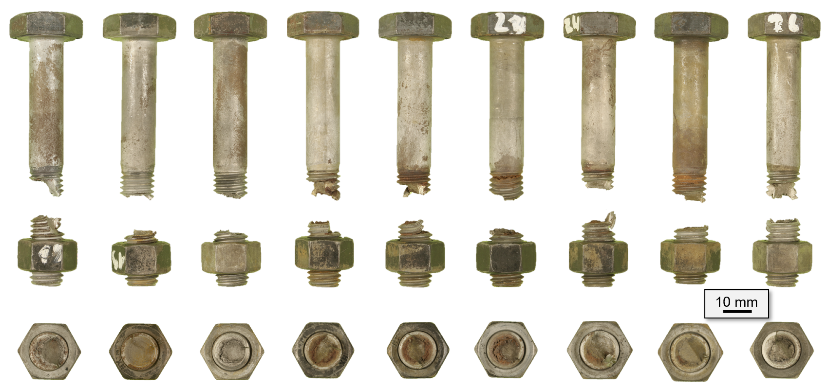 - Step 2: Removal of the bolting assembly from the fatigue testing machine and application of a suitable (e.g., hydrochloric) acid at the first load bearing thread;