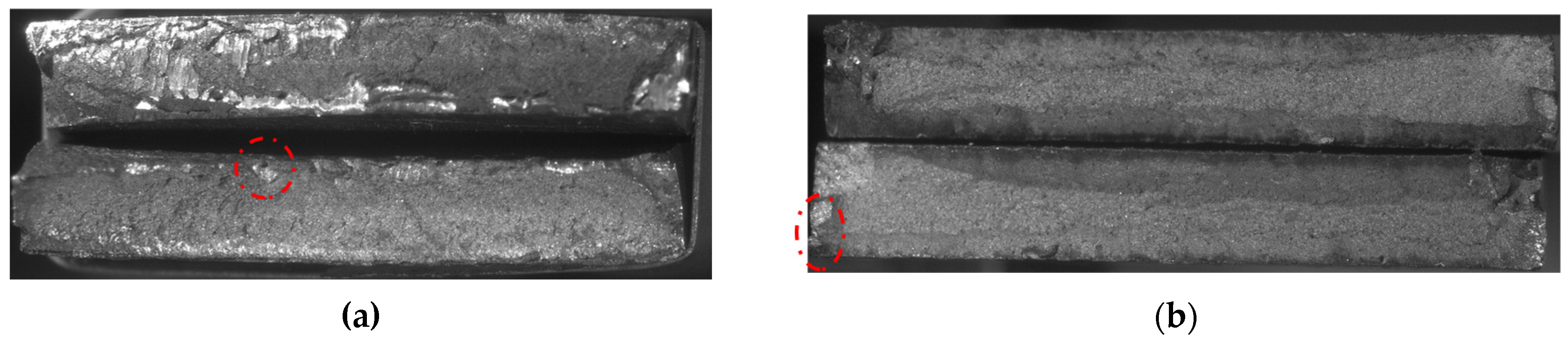 Figure 4) revealed that crack initiation often originated from internal defects such as pores, highlighting their critical role in influencing fatigue life [