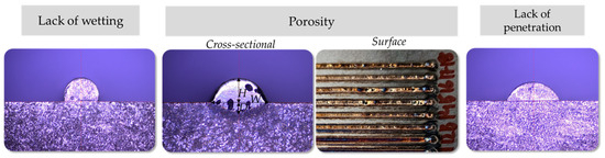 Failure criteria, lack of wetting, porosity, lack of penetration.