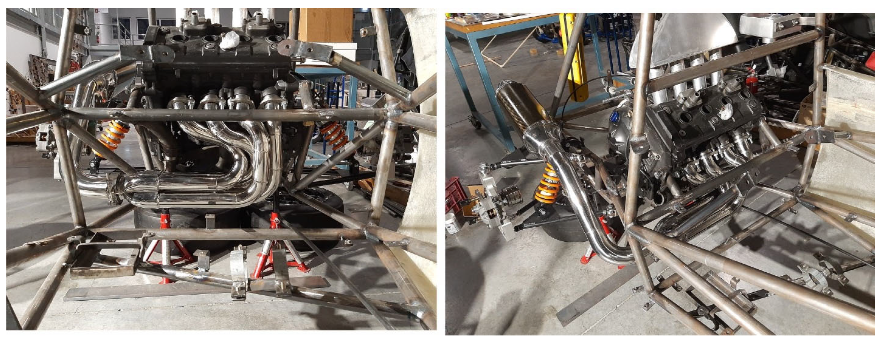 Designs, simulations, and trial-and-error procedures led to the optimization of the Formula Student racing car exhaust manifold. To assess the functionality and efficiency of the presented exhaust manifold, simulations were conducted at 5000, 10,000, and 15,000 rpm. For the simulations, the k-ε model was implemented. The parameter that assesses the success of the exhaust system design is the back pressure. The increase in back pressure affects the filling of the cylinders with fresh mixture, since both the intake and exhaust valves are open simultaneously for a short period. Thus, based on the results listed in the literature, the back pressure was reduced compared to other studies. The referred study results were presented up to 15,000 rpm. In the present study, for all engine speed cases, the pressure is the back pressure. The automatic optimization of the exhaust design is going to be conducted using Neural Networks or Adjoint Solver.