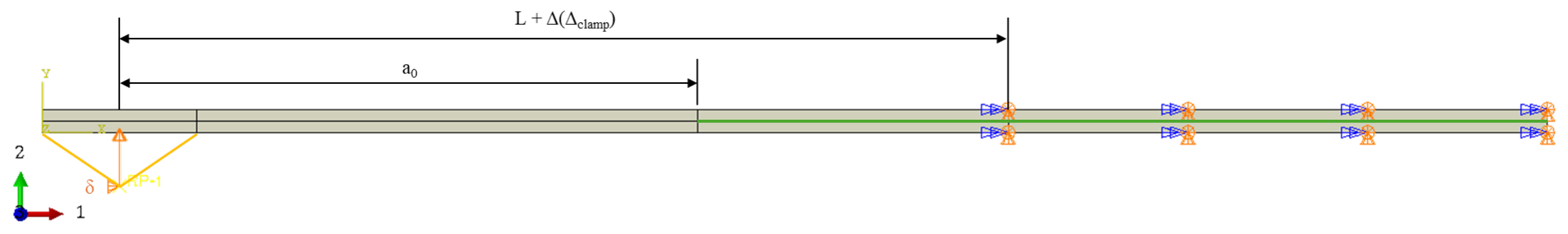 The FEM used to simulate the ELS specimen was developed in Abaqus/Standard 2024 using a 2D approach. The specimen was divided into two sublaminates, each with a thickness