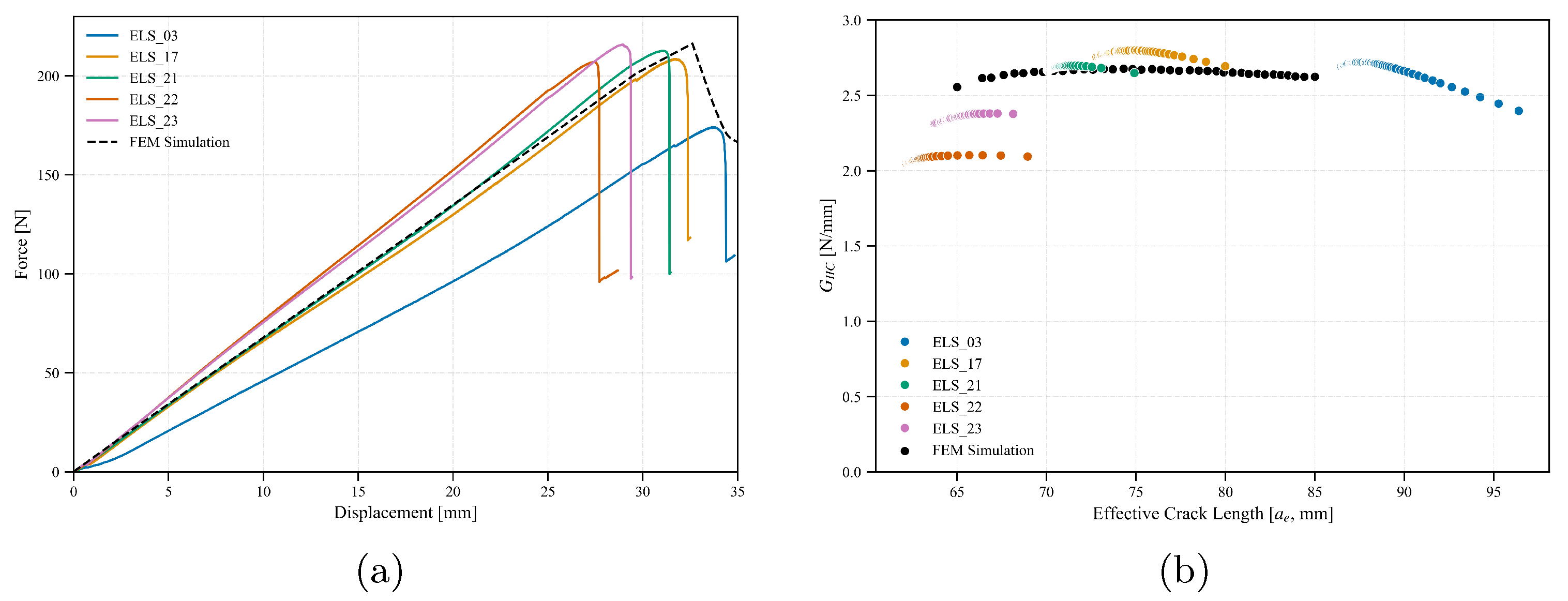 - ISO 15114:2014(E); Fibre-Reinforced Plastic Composites—Determination of the Mode II Fracture Resistance for Unidirectionally Reinforced Materials Using the Calibrated End-Loaded Split (c-ELS) Test and an Effective Crack Length Approach. ISO: Geneva, Switzerland, 2014.