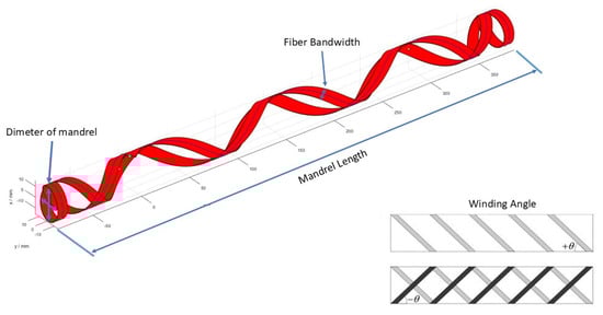 Here, R denotes the mandrel radius, ϕ represents the angle along the z axis and is the parallel parameter, and θ represents the meridional parameter. Helical winding patterns refer to the geodesic curves on a cylinder around which a fiber is wrapped.