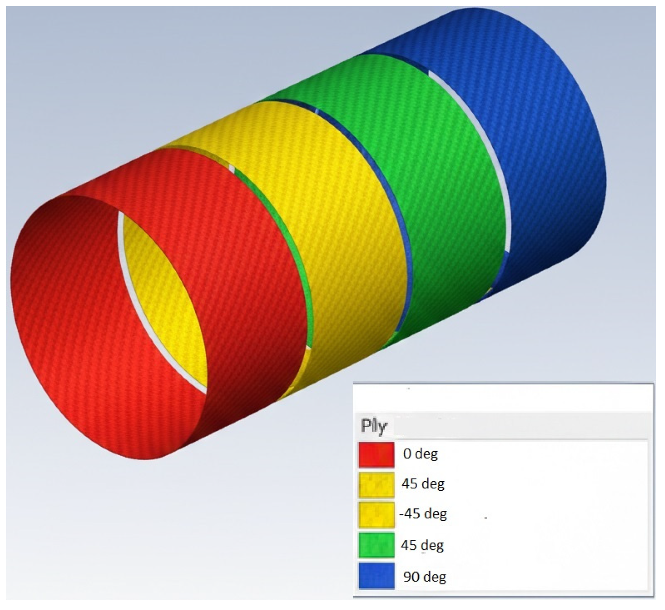- Guo, Z.; Li, Z.; Cui, J.; Li, Y.; Luan, Y. The effect of winding patterns on the mechanical behavior of filament-wound cylinder shells. Multidiscip. Model. Mater. Struct. 2019, 16, 508–518. [Google Scholar] [CrossRef]