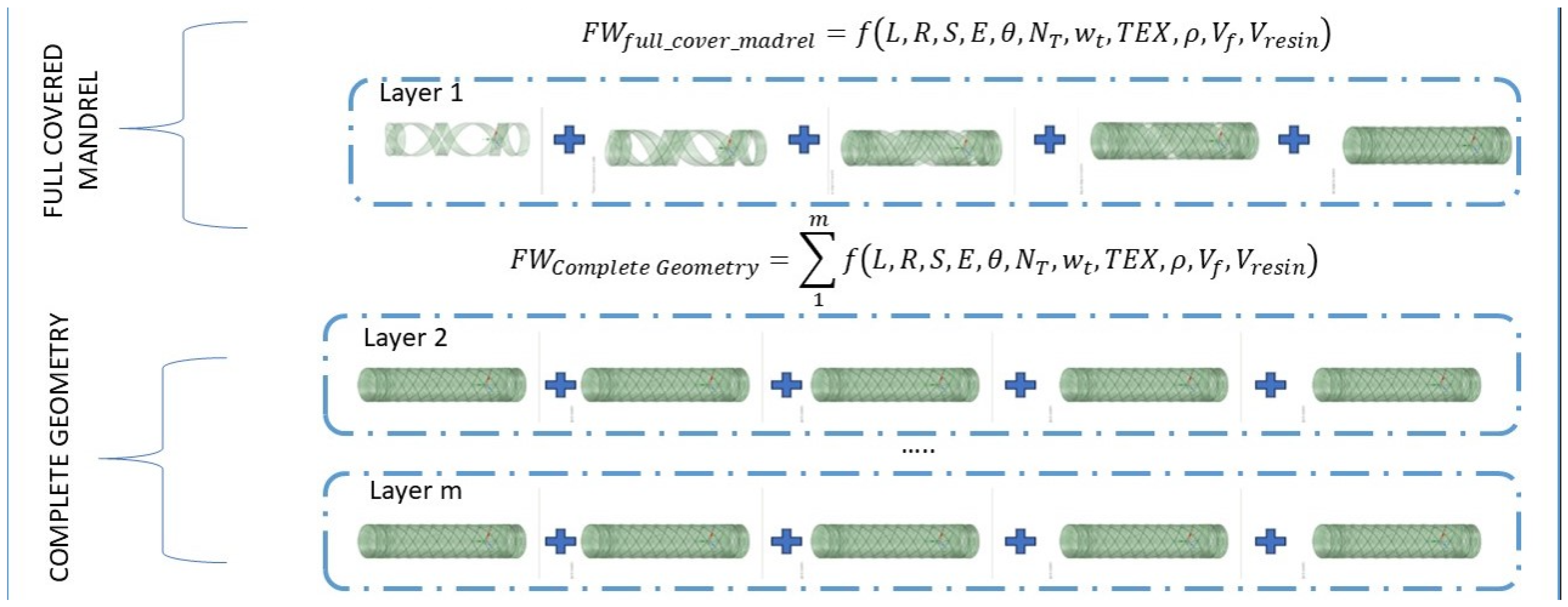 - Liu, C.; Shi, Y. Analytical model for the winding process-induced residual stresses of the multilayered filament wound cylindrical composite parts. Mater. Res. Express 2019, 6, 105354. [Google Scholar] [CrossRef]
