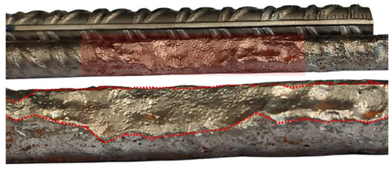 As demonstrated by numerous studies, corrosion alters the geometry of reinforcing bars due to their mass loss (Figure 1) with a consequent reduction in their cross-section, which leads to a deterioration in their mechanical properties in terms of strength (yield stress fy and ultimate tensile stress fu) and ductility (maximum deformation at failure εmax).