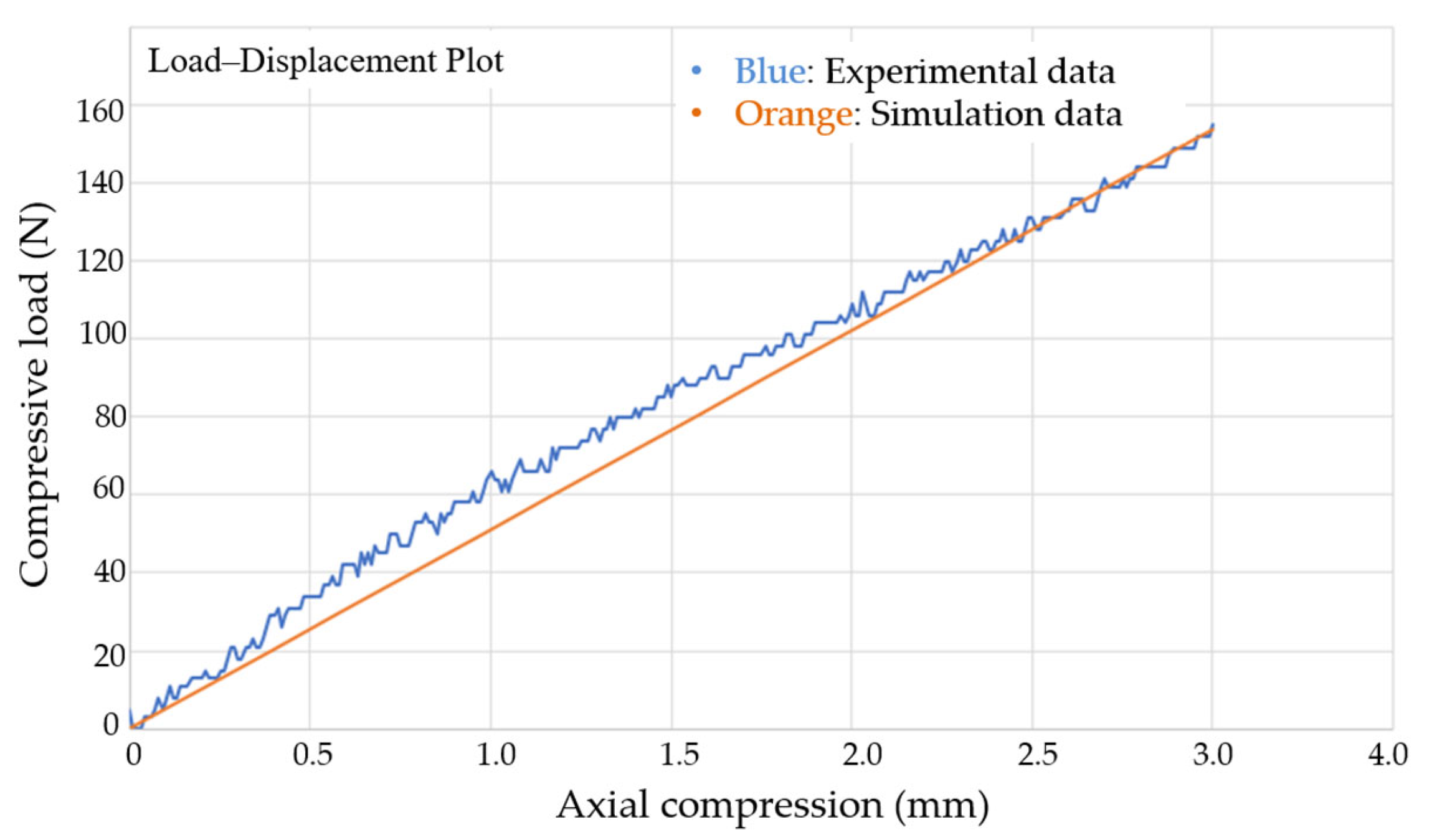 Figure 3, both numerical and experimental results displayed very similar deformation patterns, including localized curvature at the specimen edges during load application. The corresponding load–displacement curves (