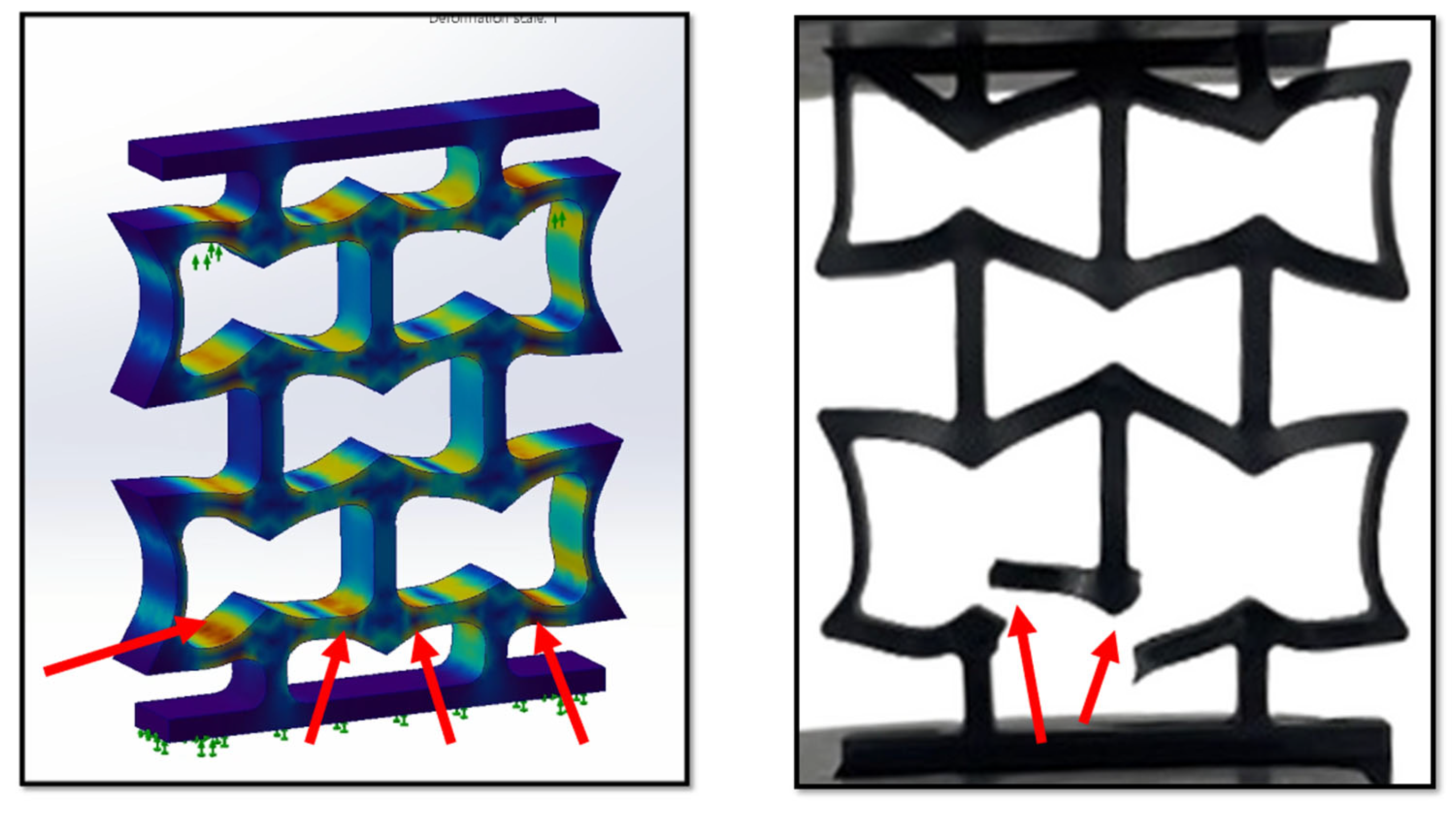 Numerical analysis corroborated these experimental findings. Von Mises stress concentrations were predicted at the same strut junctions where cracks appeared in the tests (