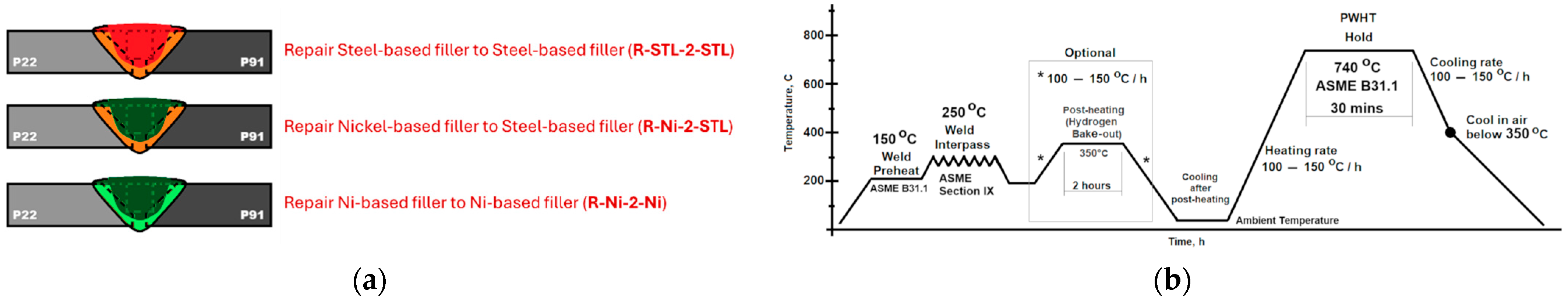 Microstructural Study of Welded and Repair Welded Dissimilar Creep-Resistant Steels Using Different Filler Materials †