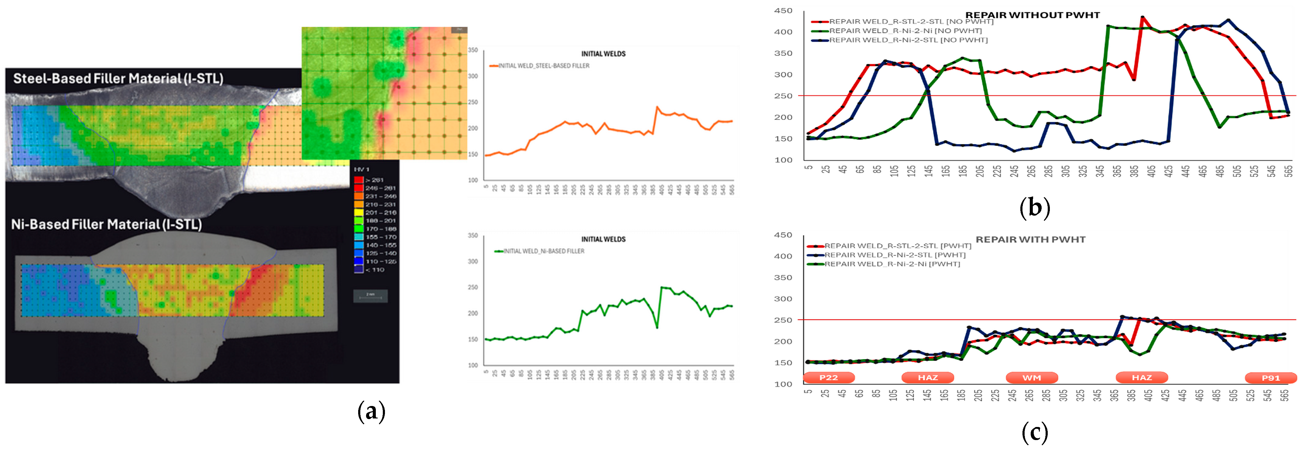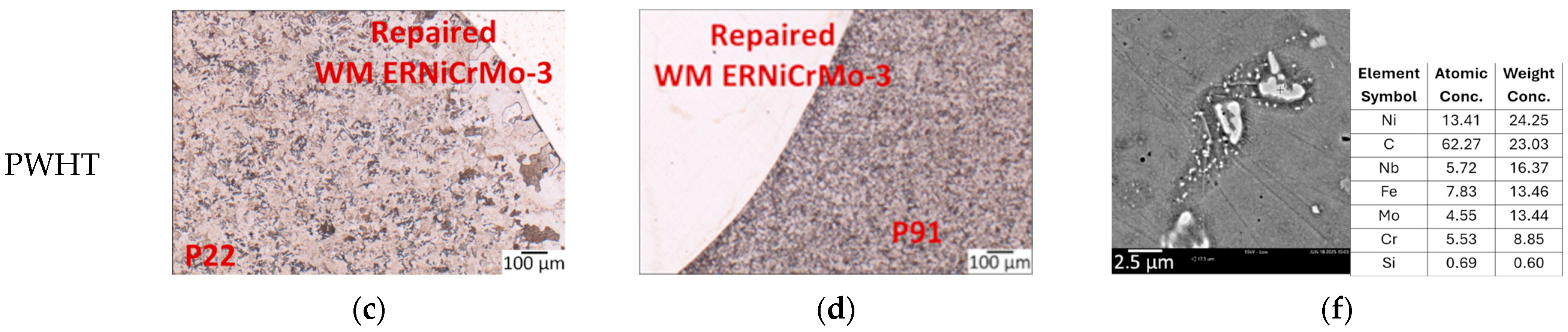 - Kumar, S.; Yadav, V.K.; Sharma, S.K.; Pandey, C.; Singh, R.; Gupta, A. Role of dissimilar Ni-based ERNiCrMo-3 filler on microstructure, mechanical properties and residual stresses of P91 welds. Int. J. Press. Vessels Pip. 2021, 193, 104443. [Google Scholar] [CrossRef]