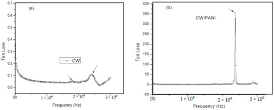 Variation of tanδ at 300 K (a) WC and (b) PANI-WC.
